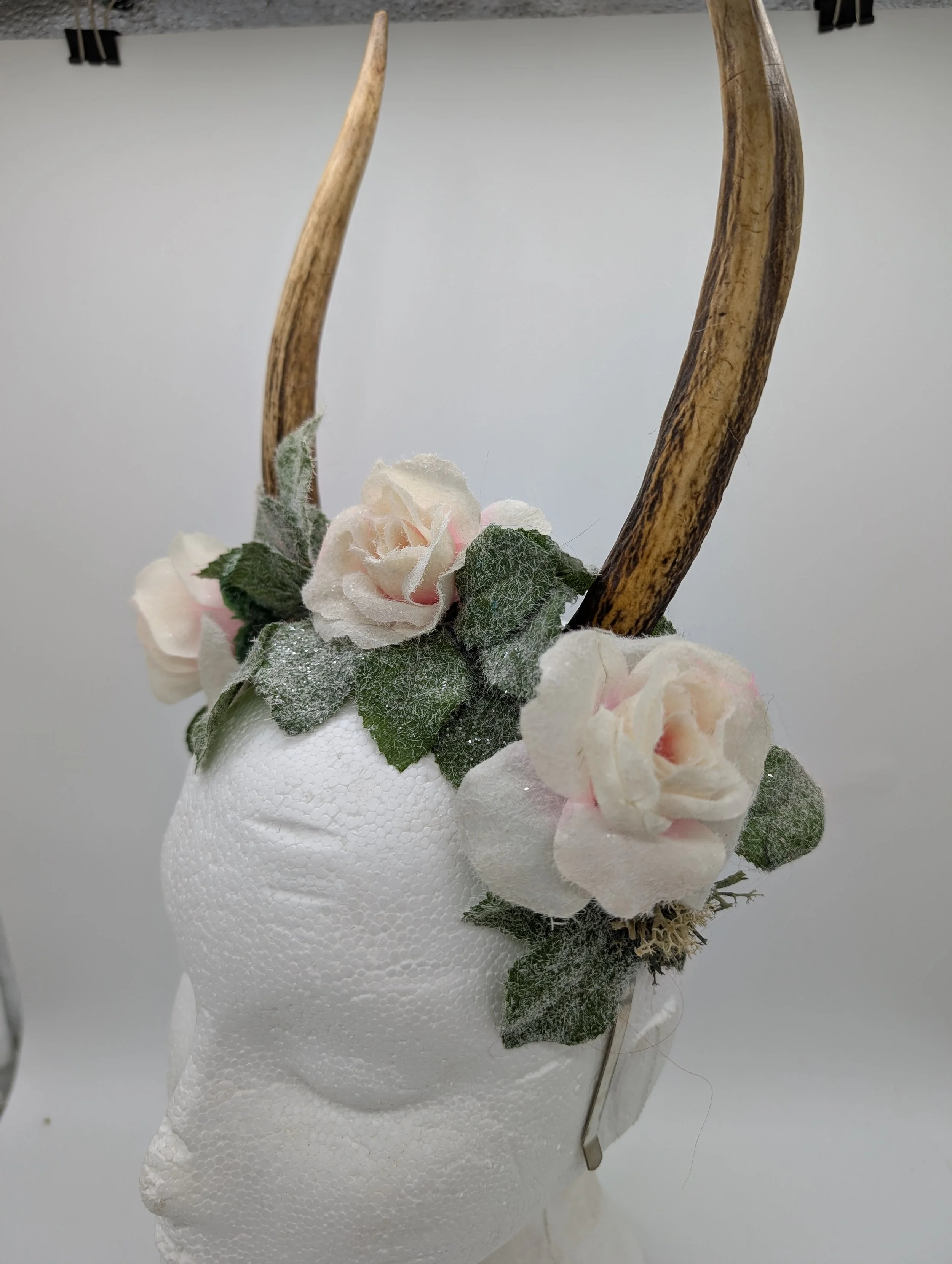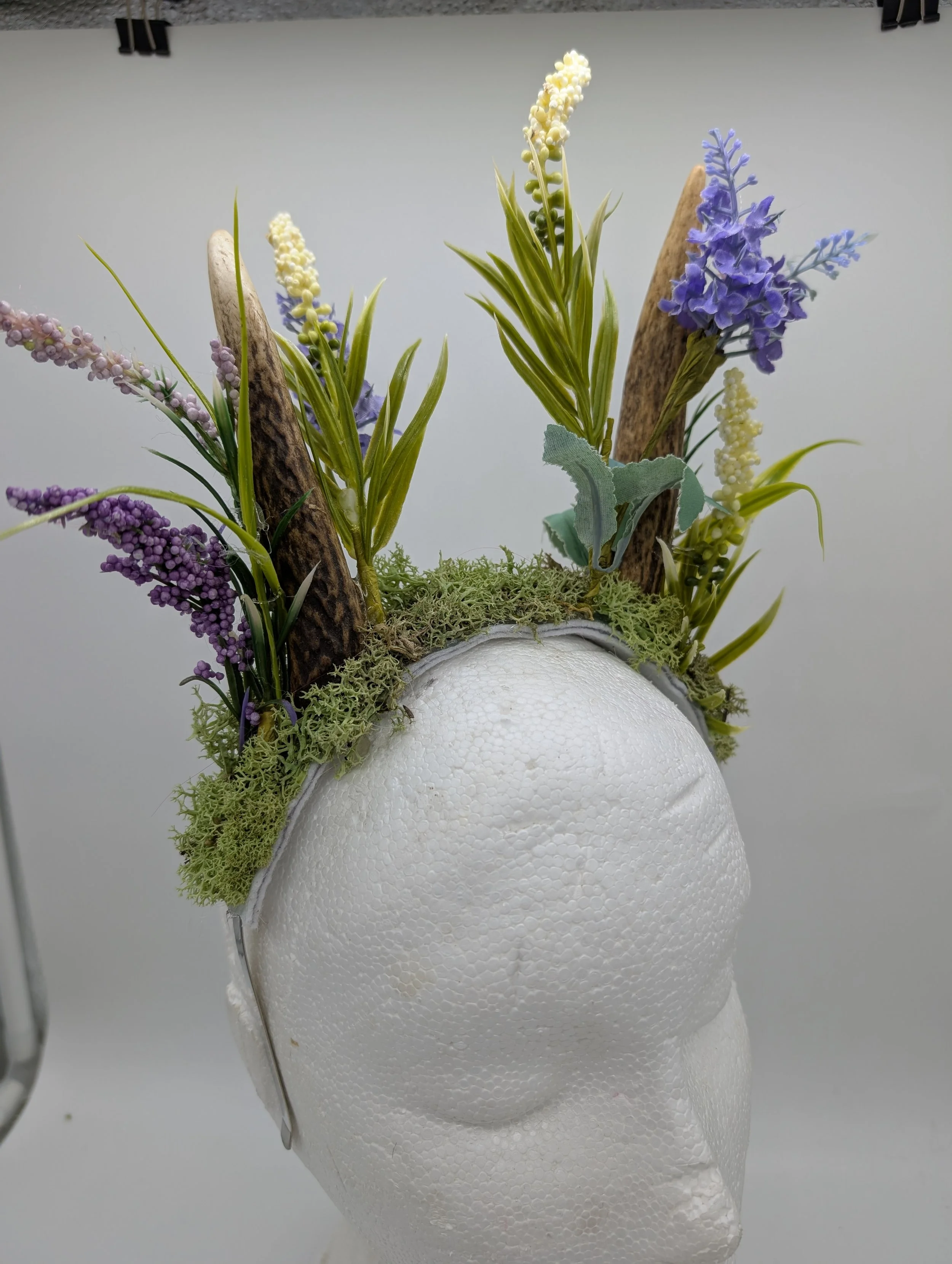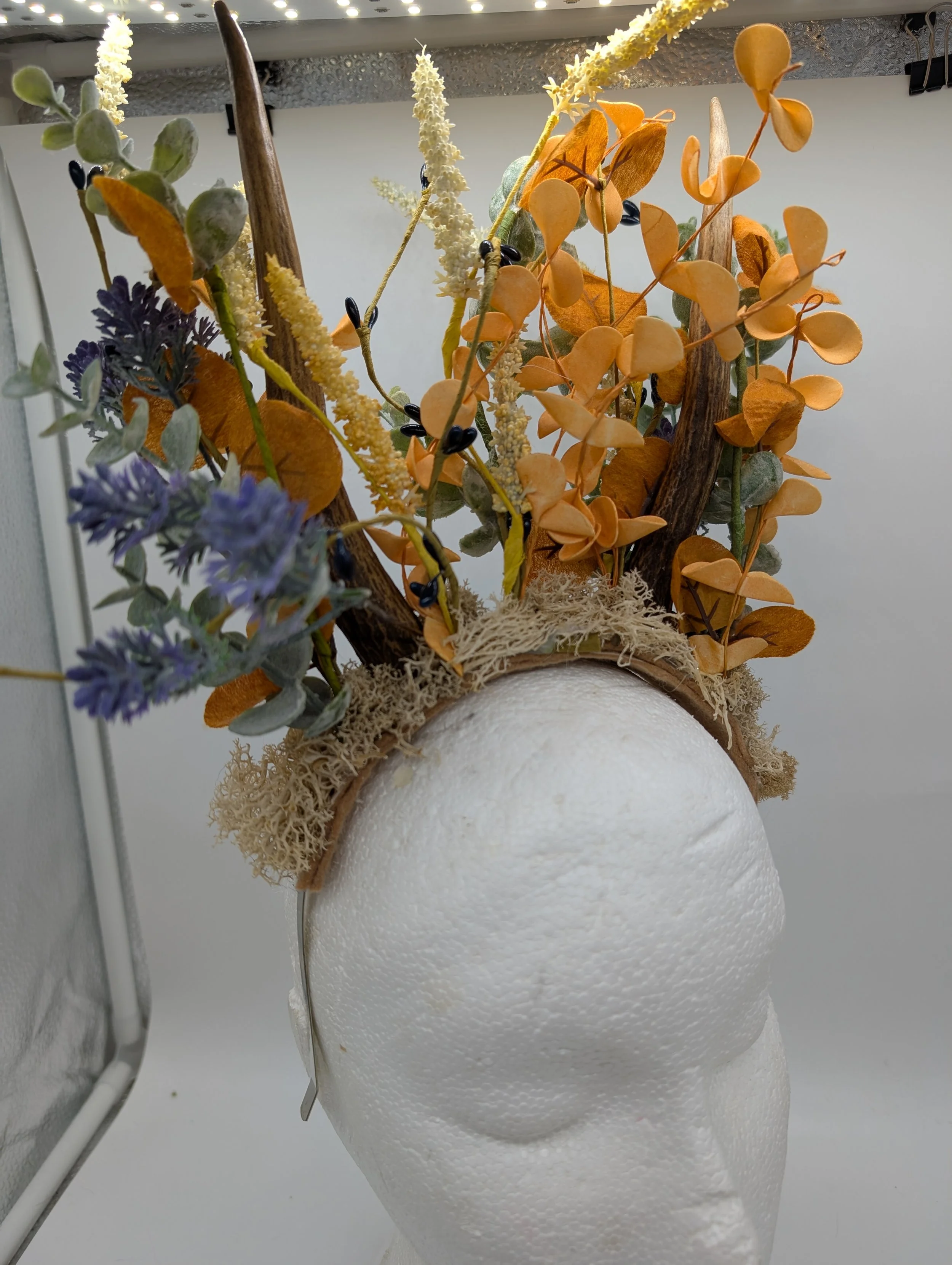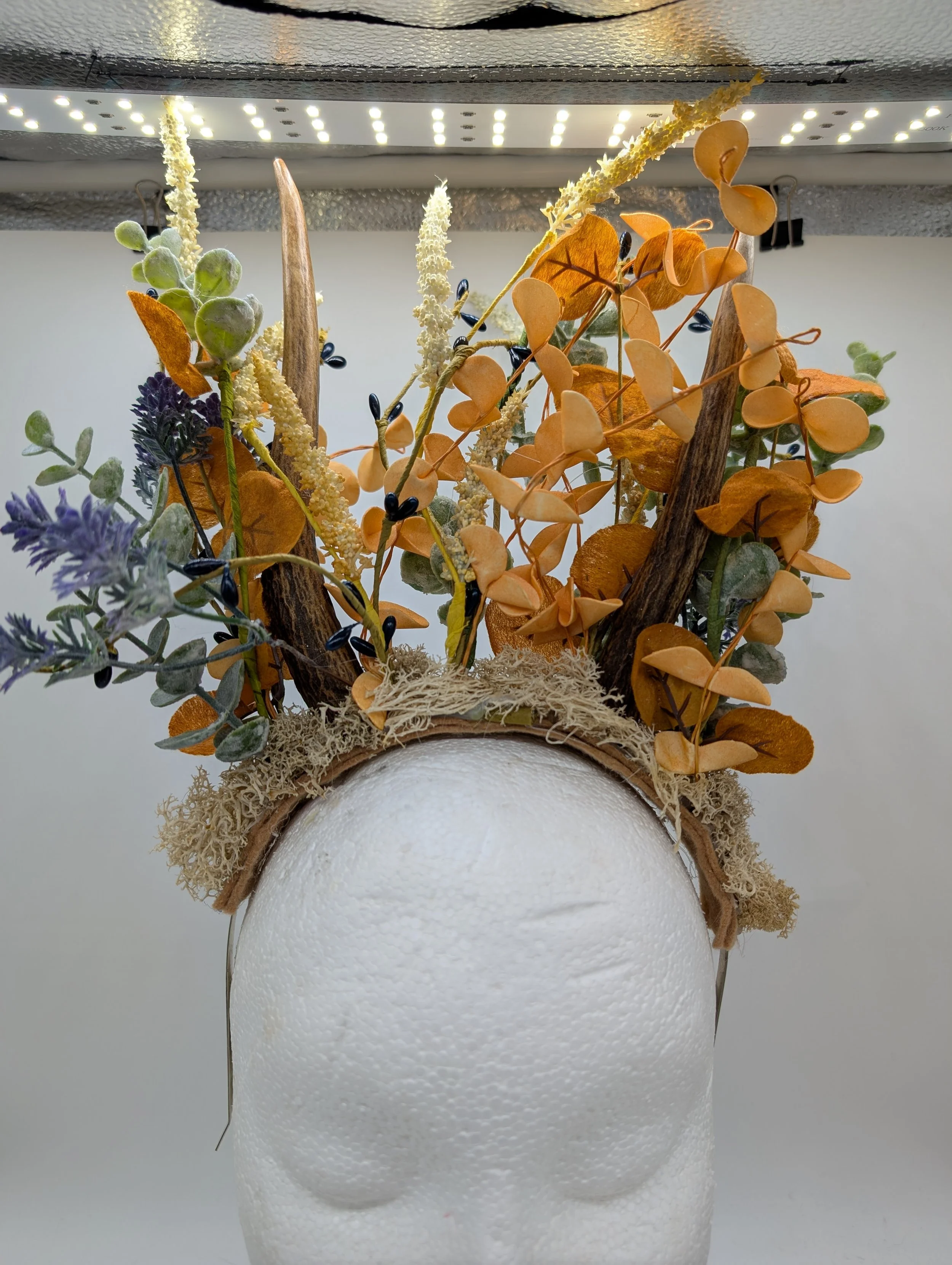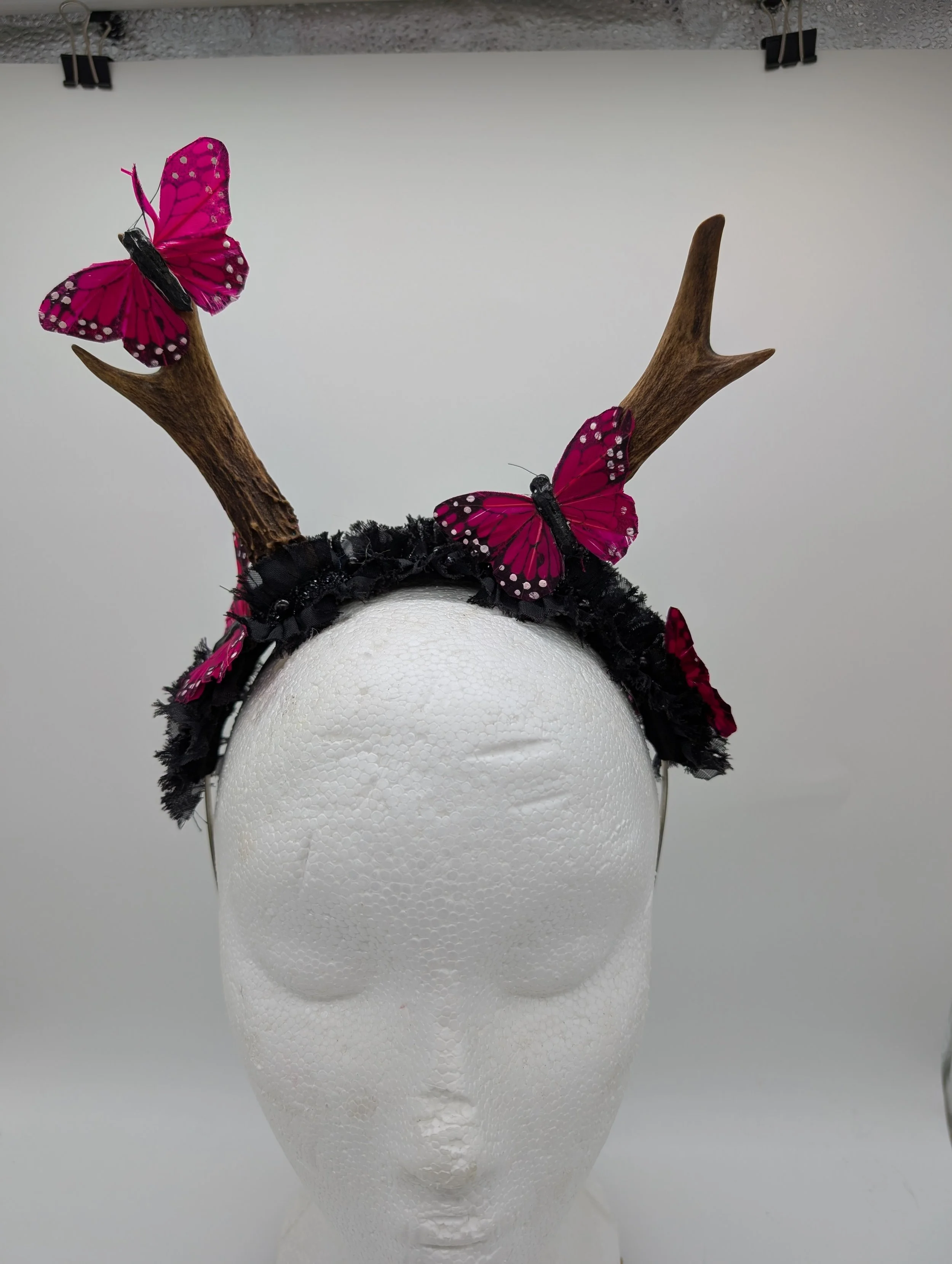 antler headband with black lace and butterflies