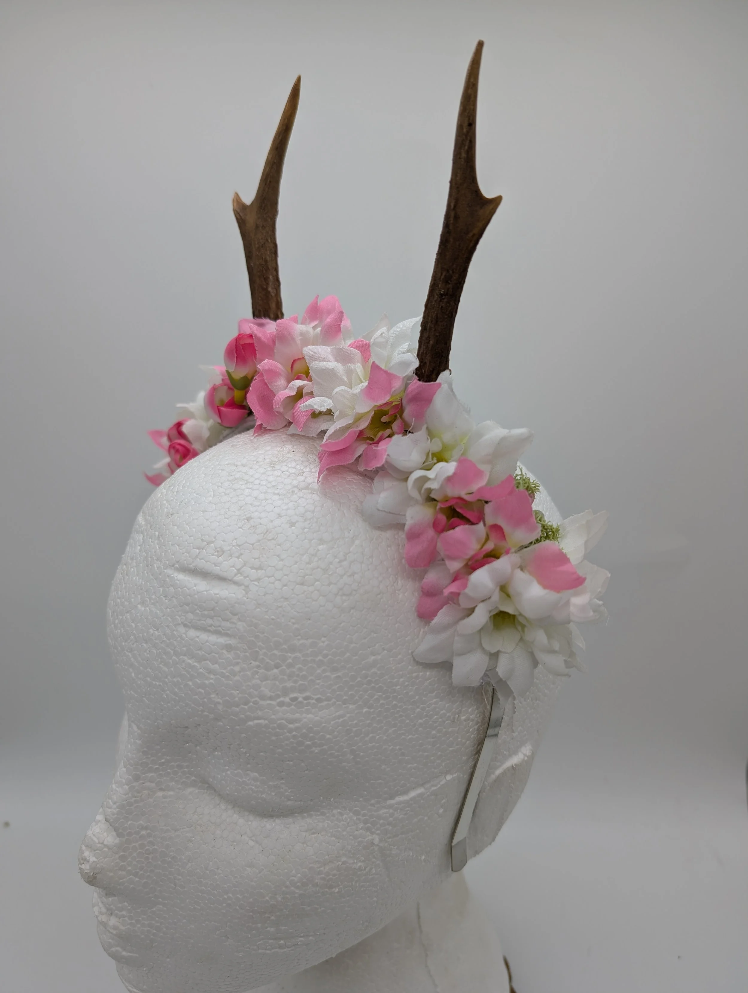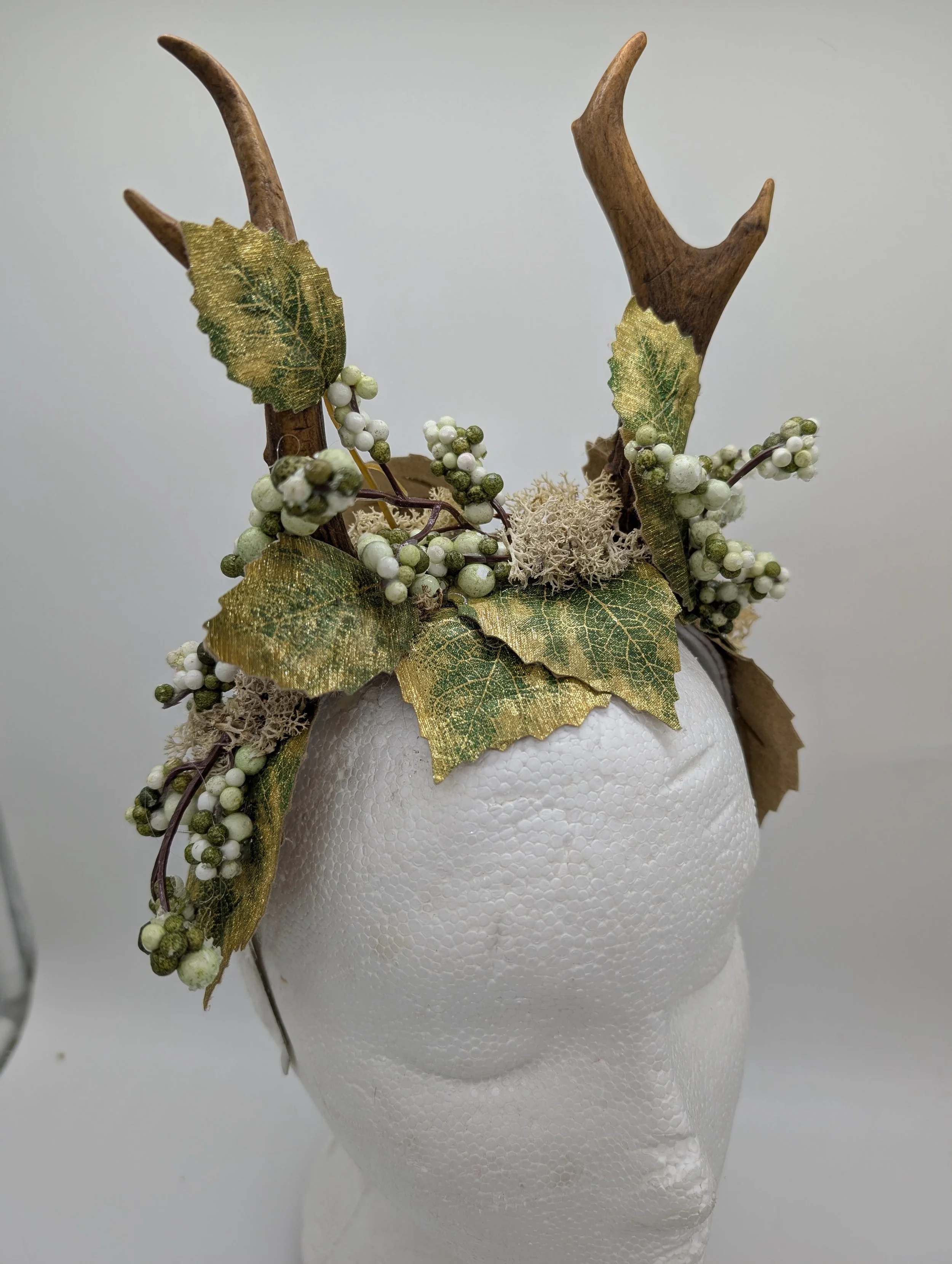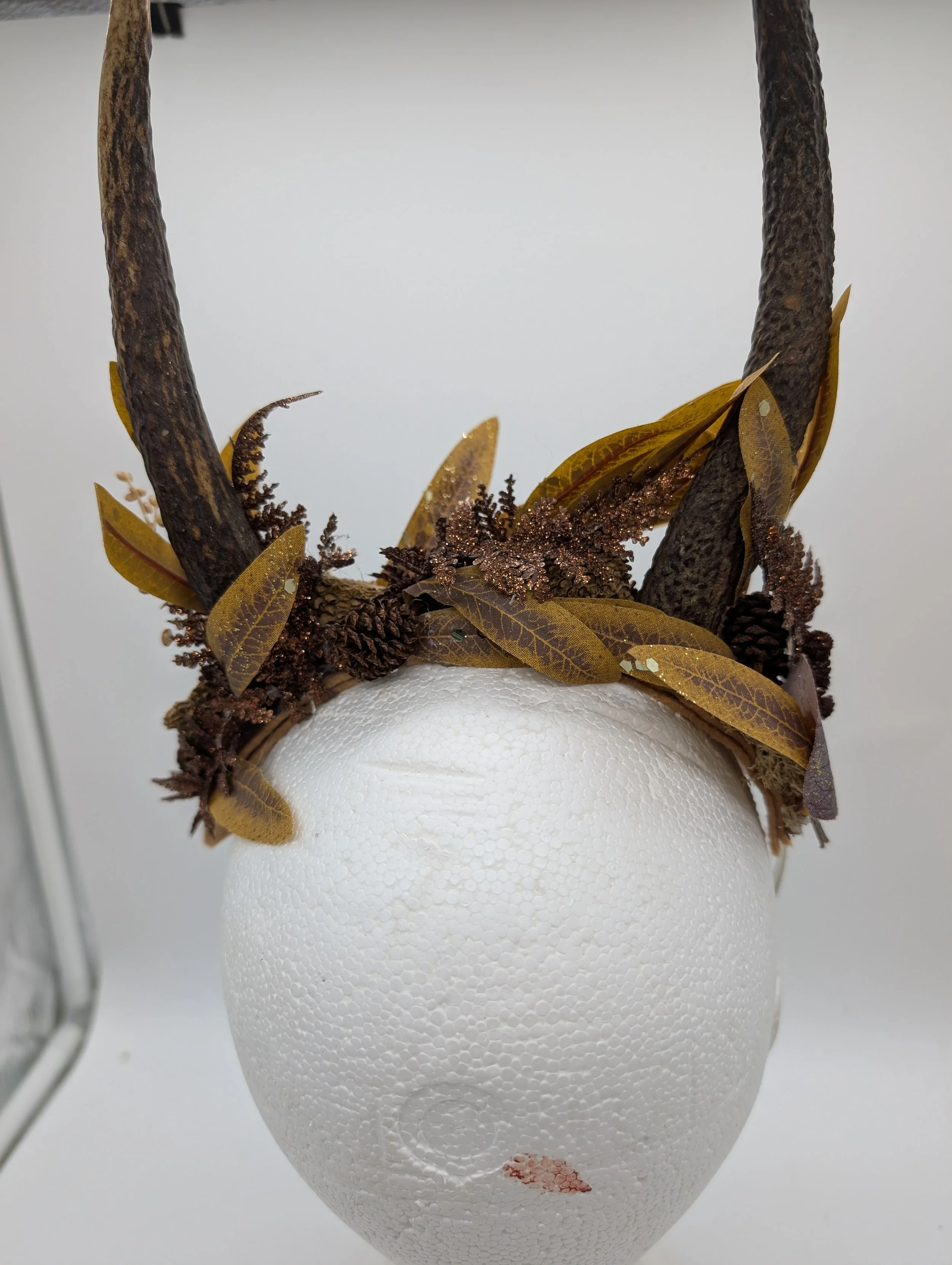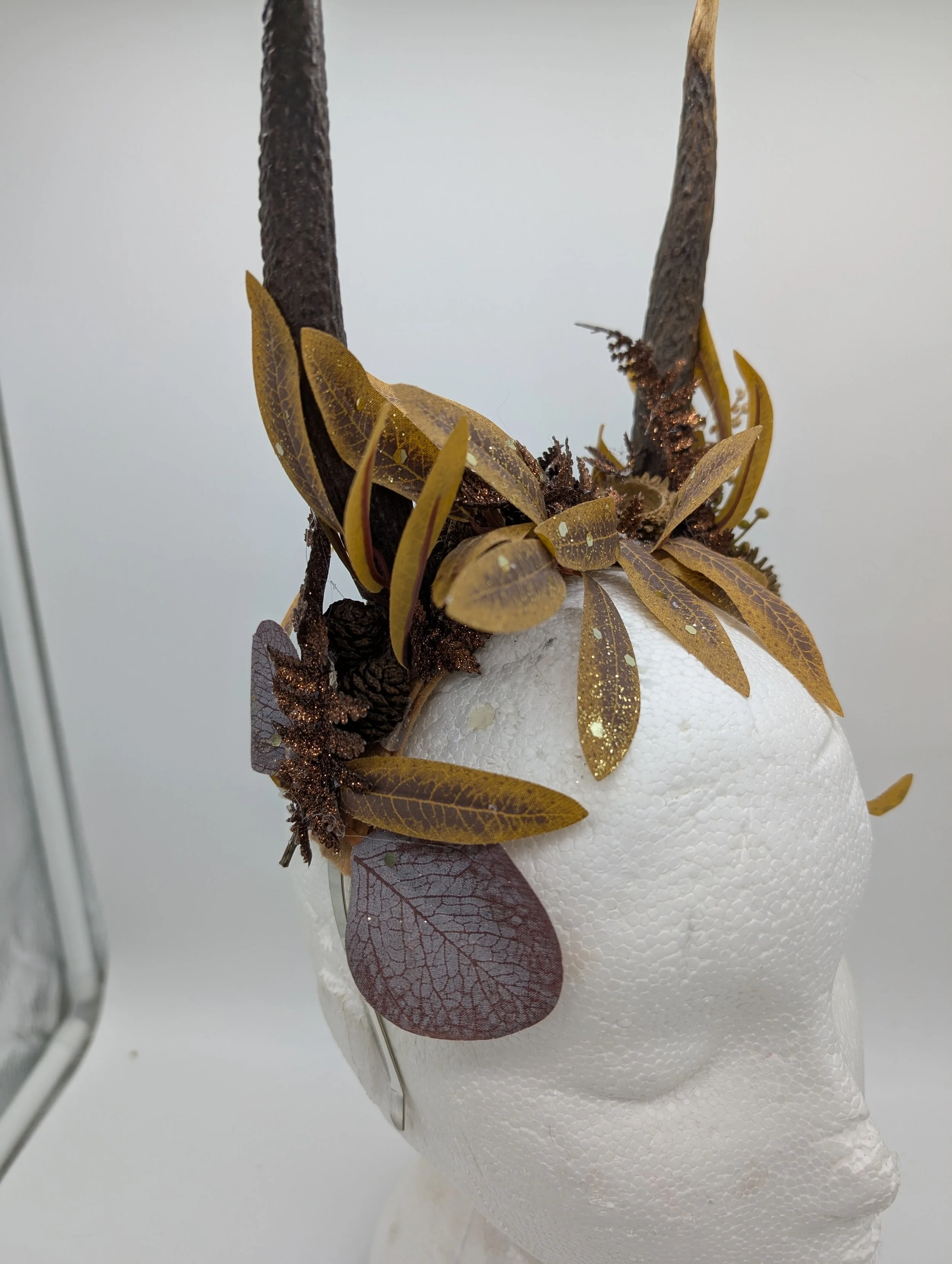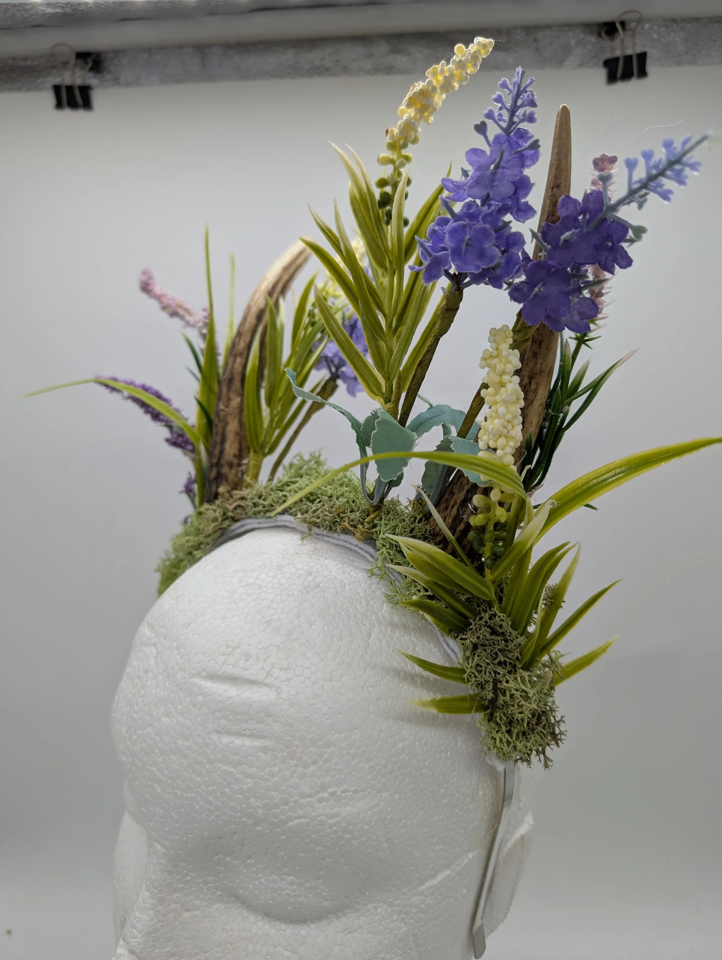 antler headband with black lace and butterflies