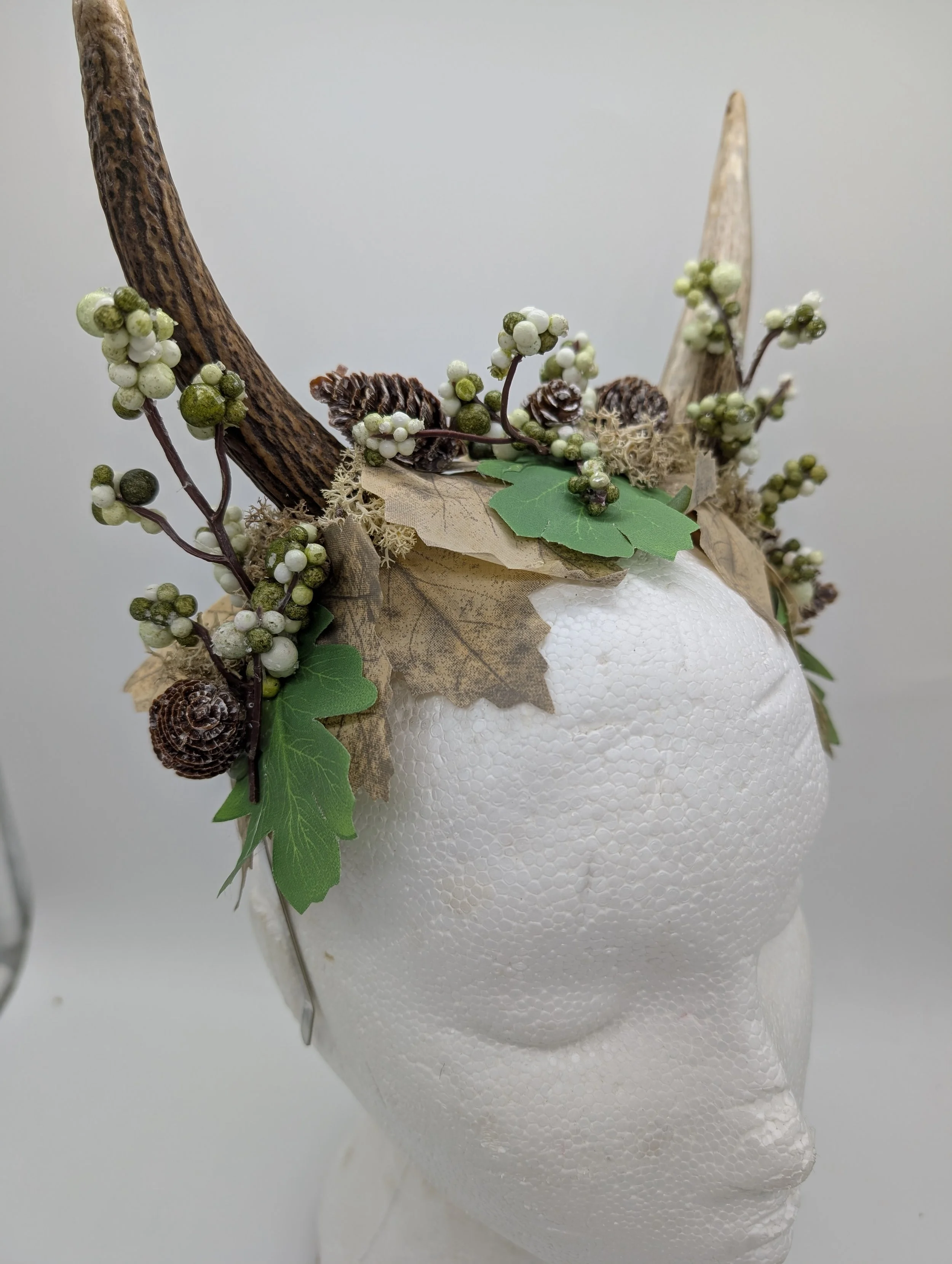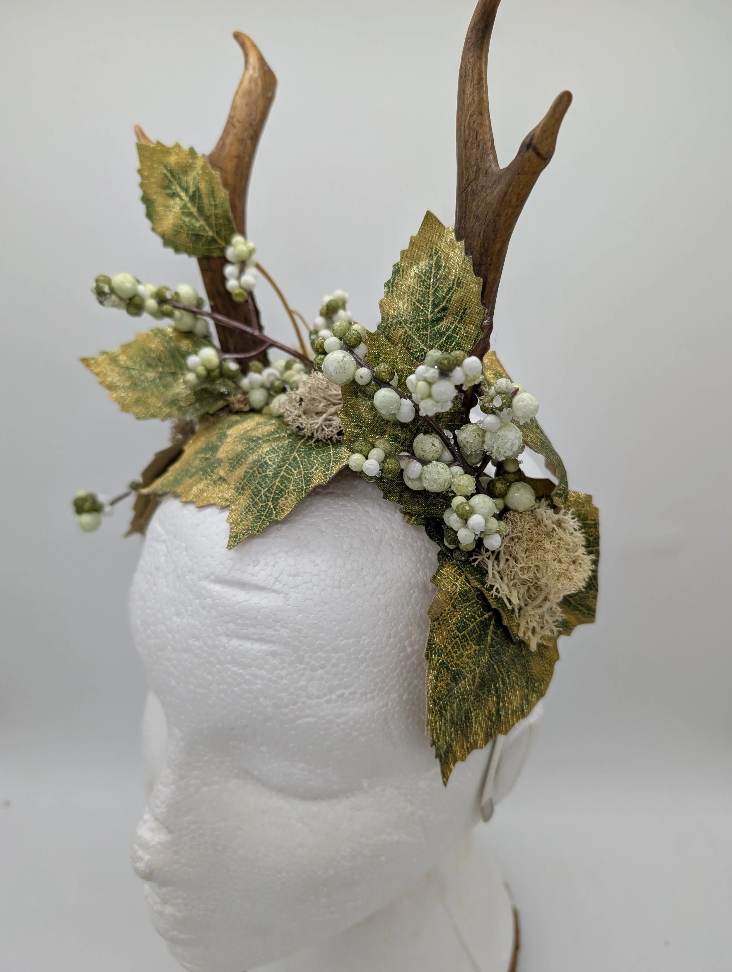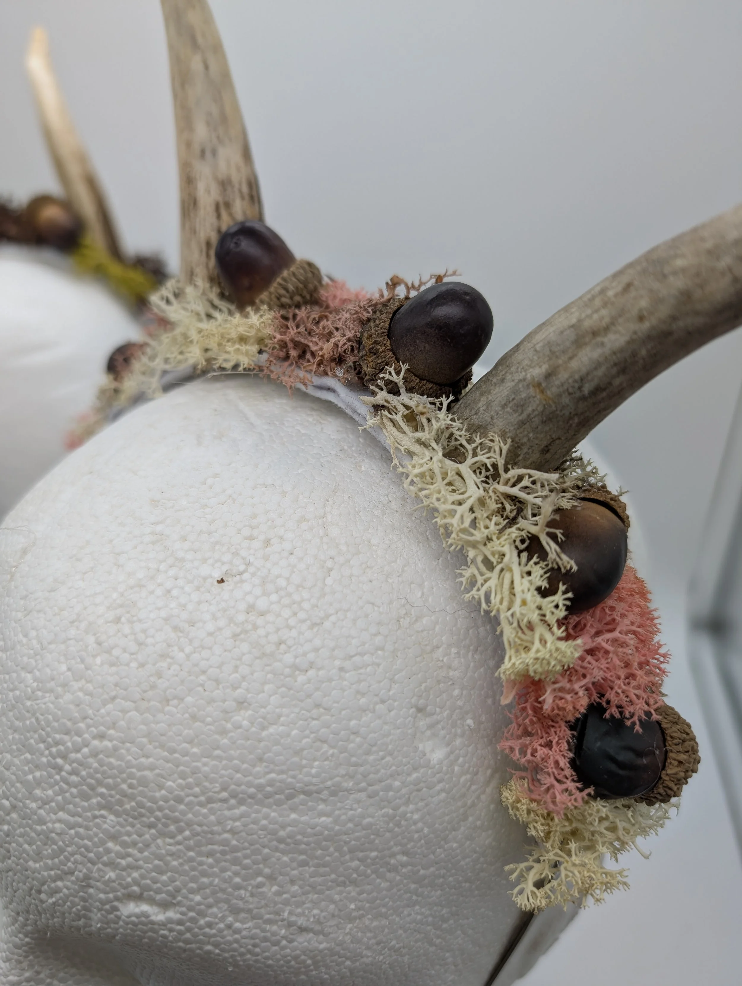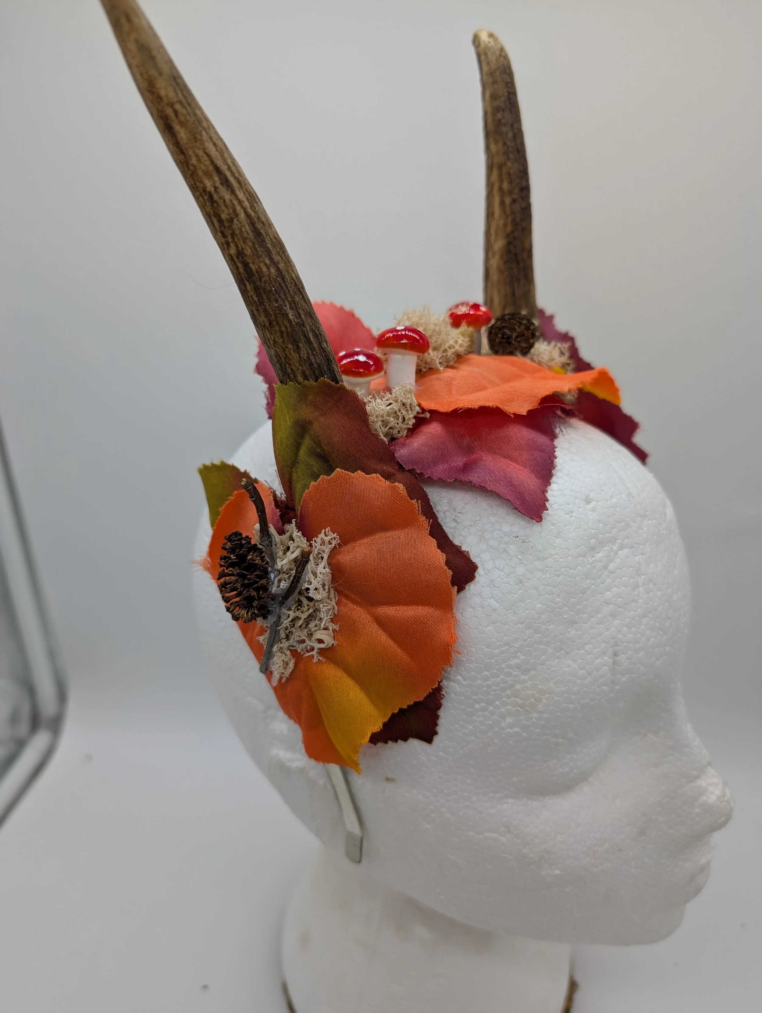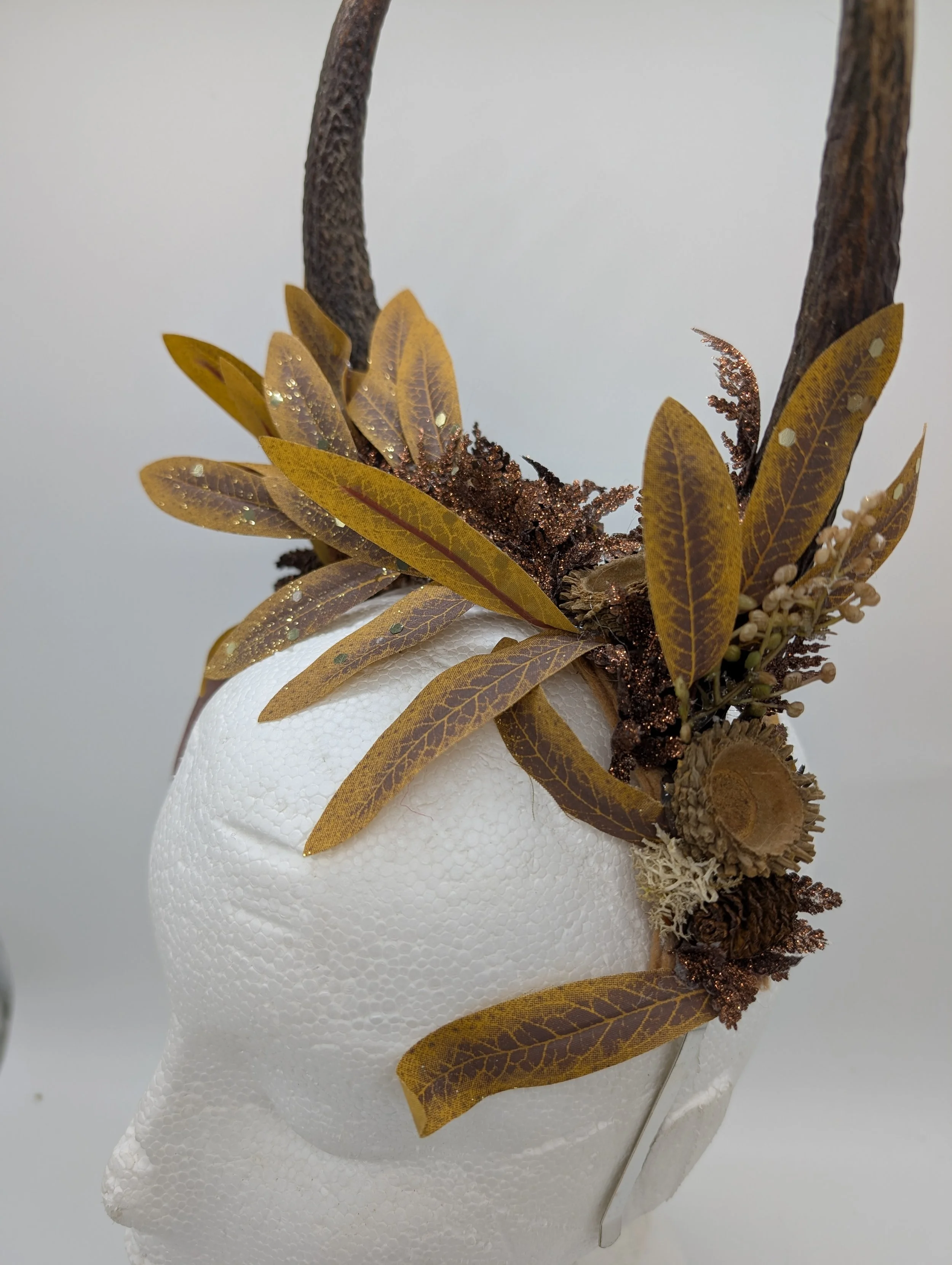 antler headband with black lace and butterflies