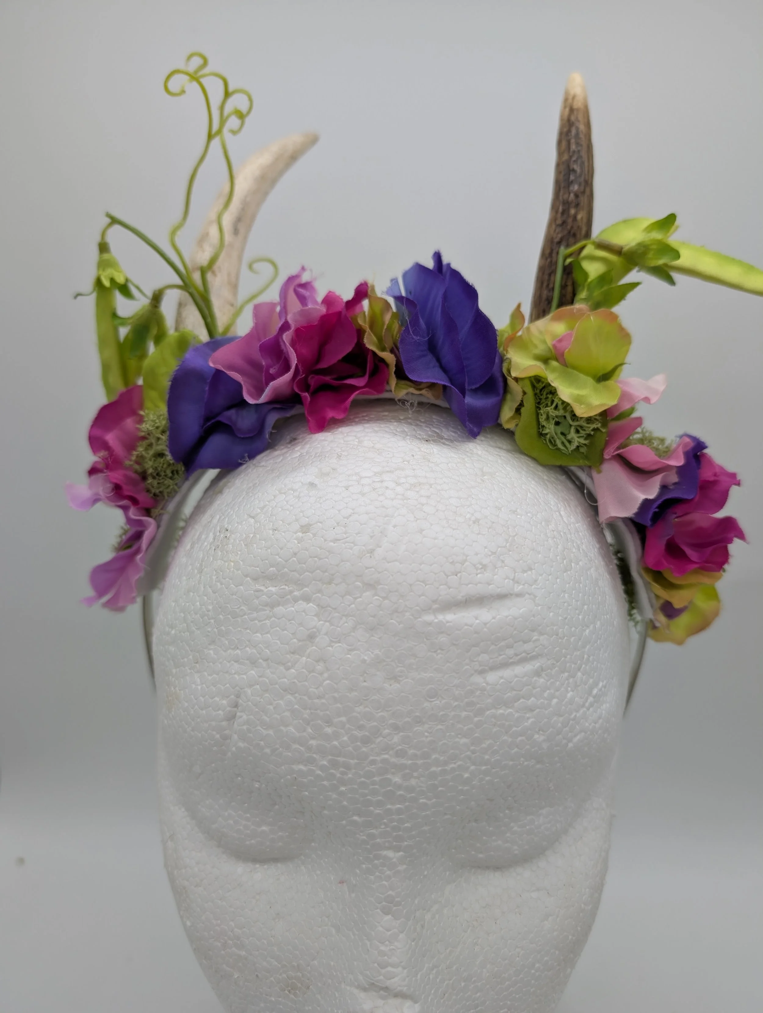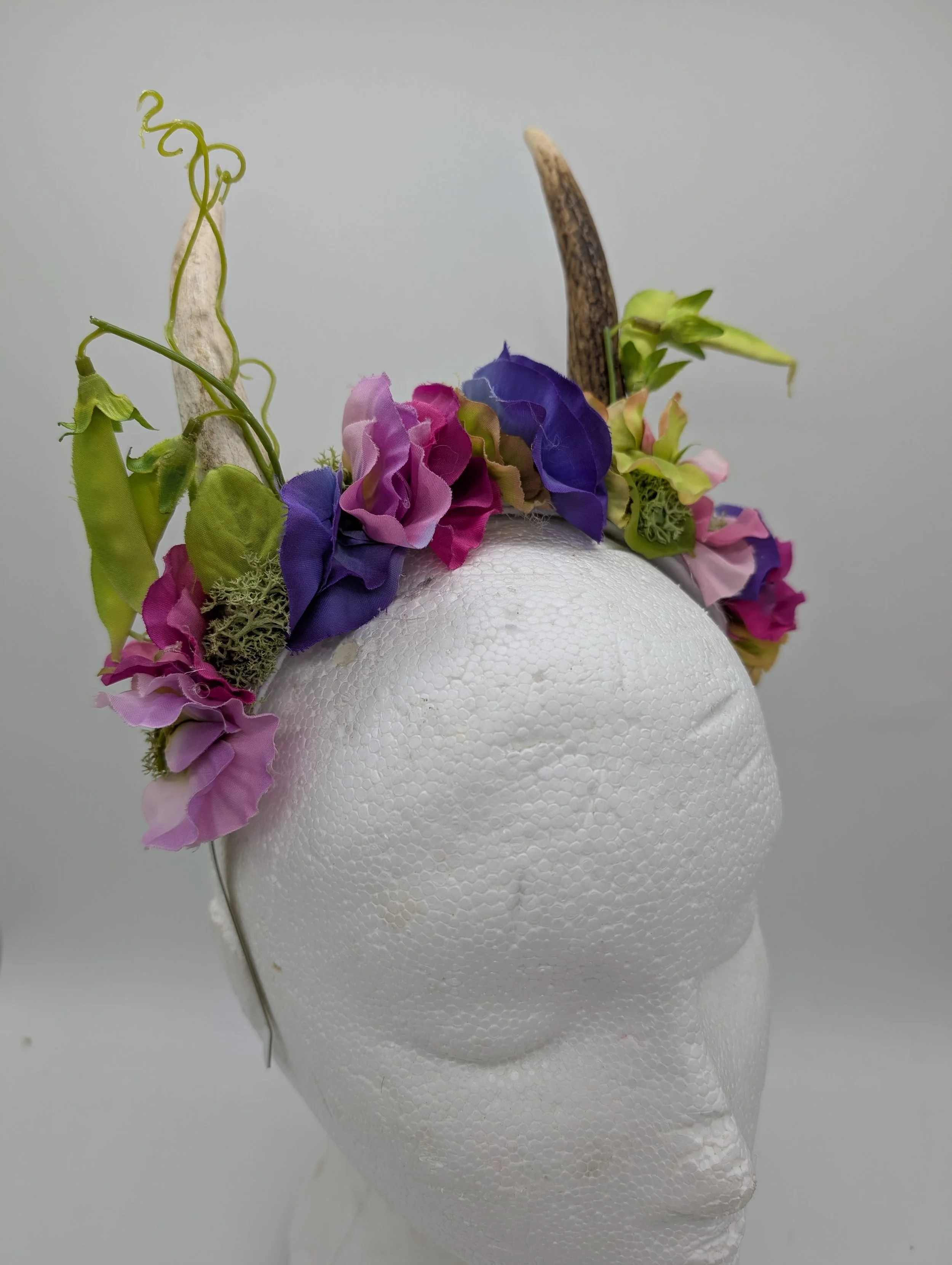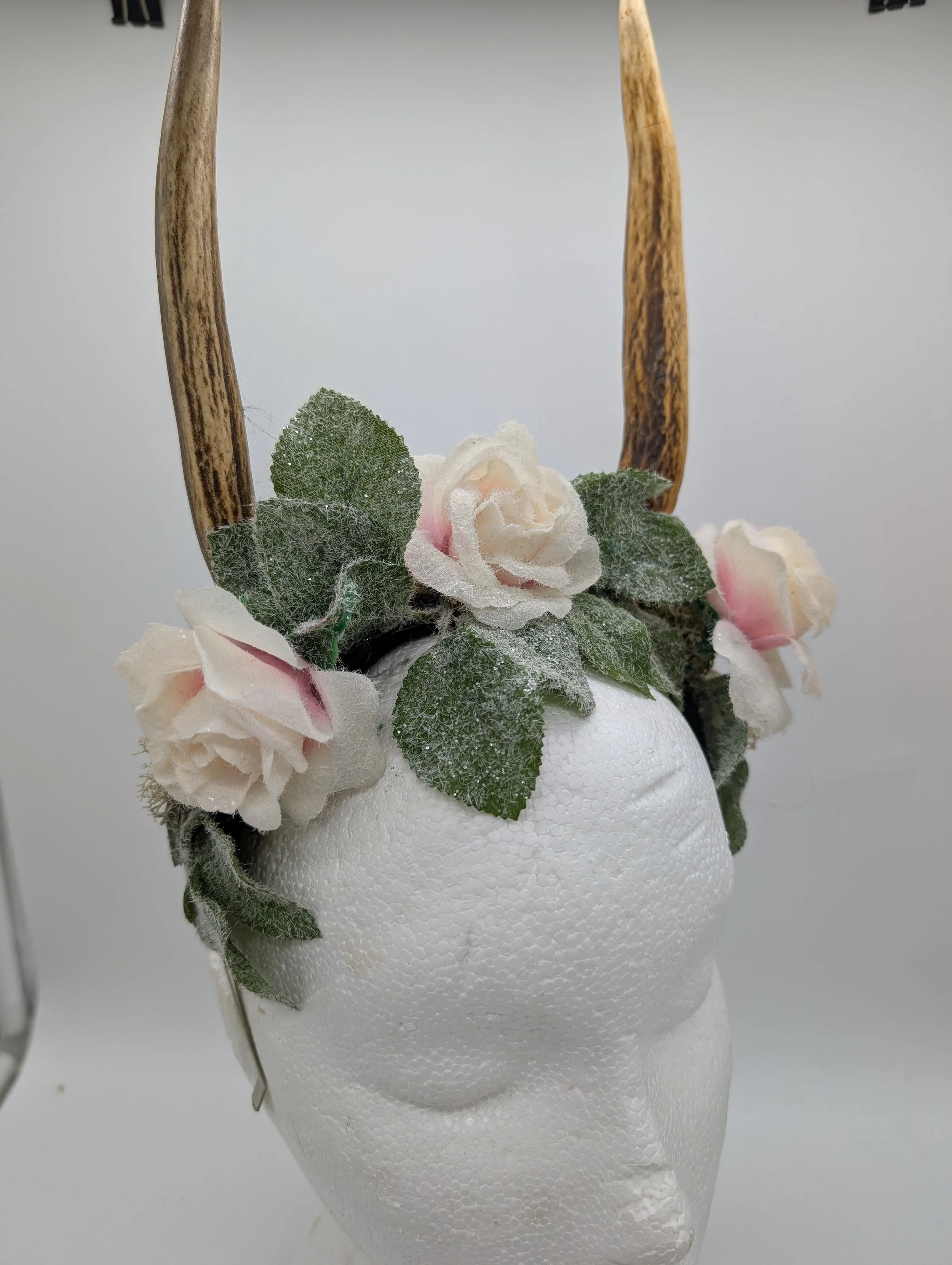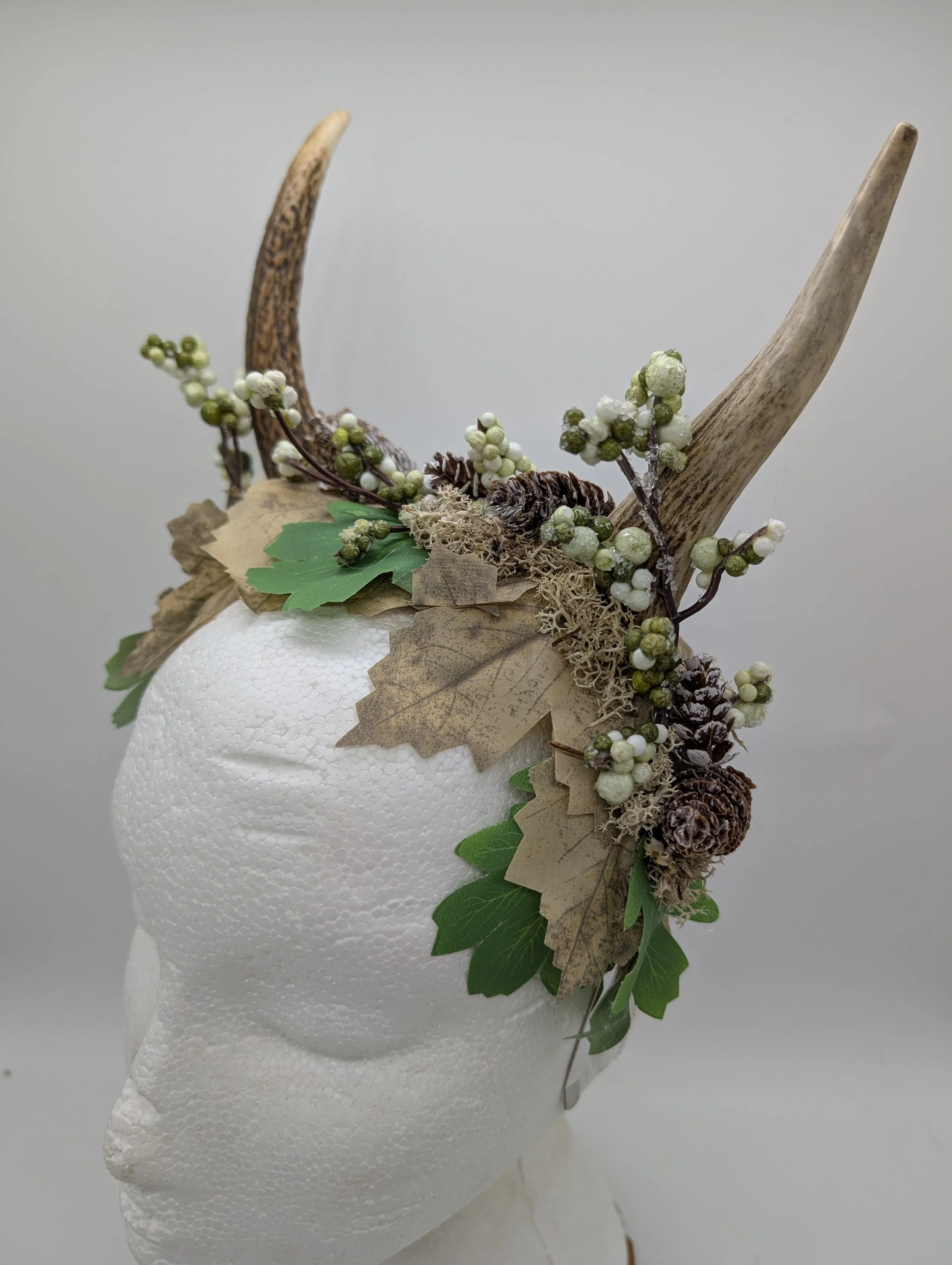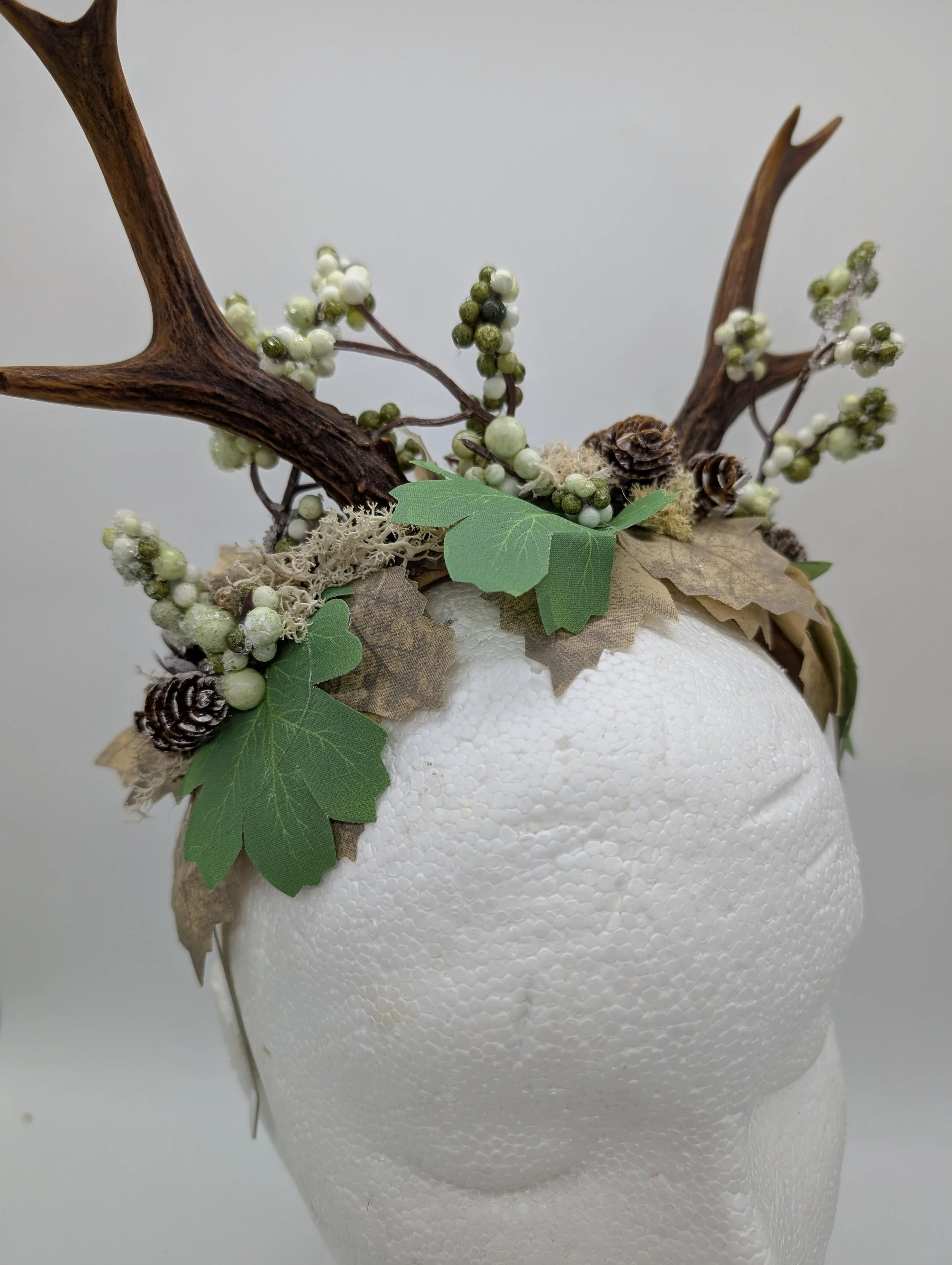 antler headband with black lace and butterflies
