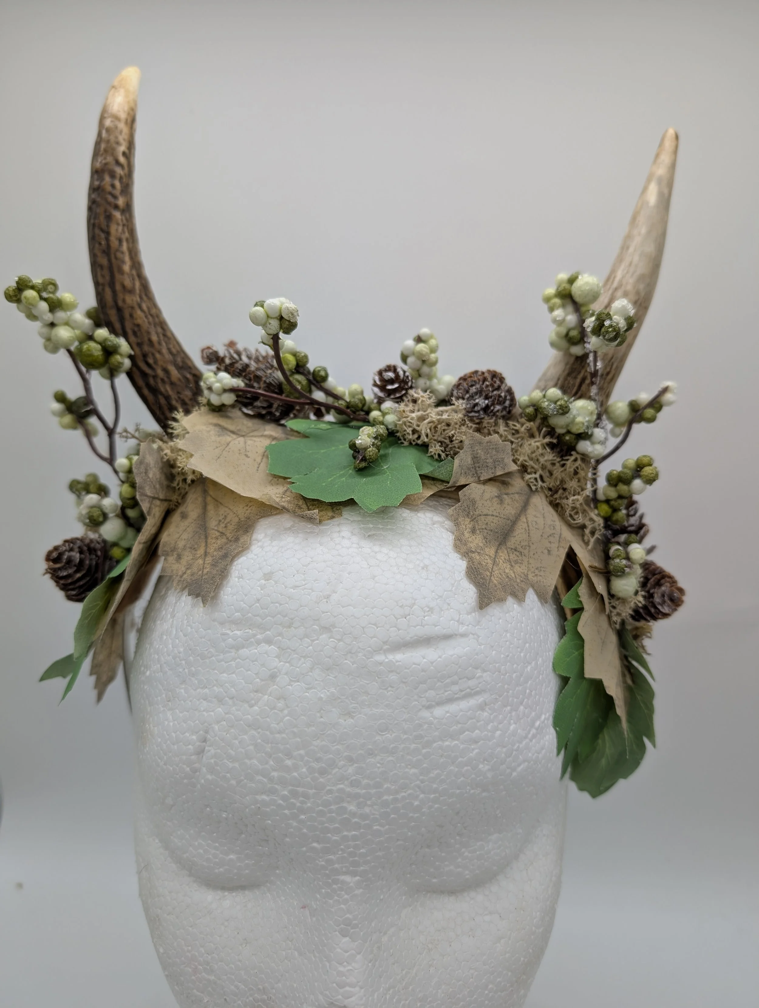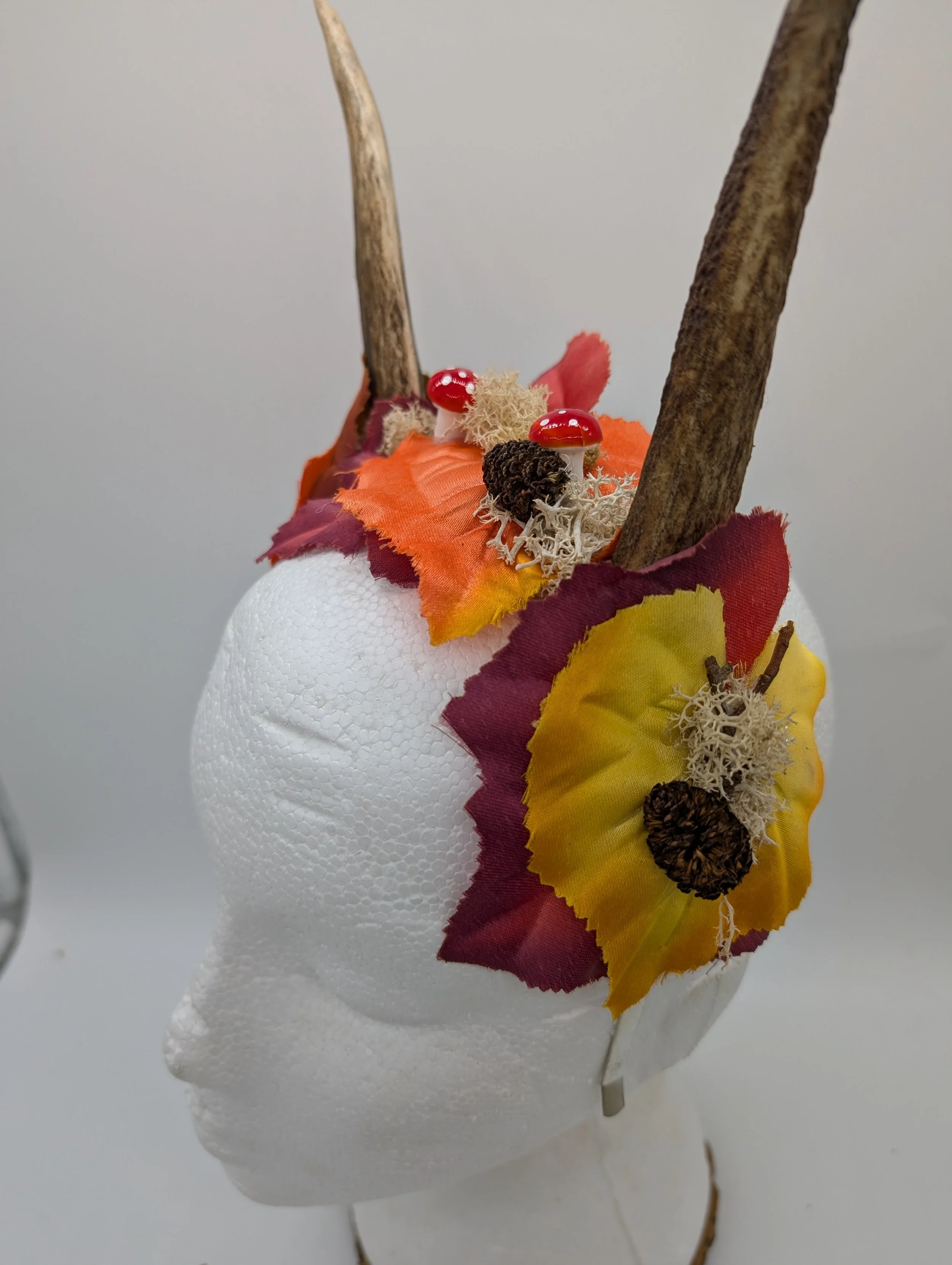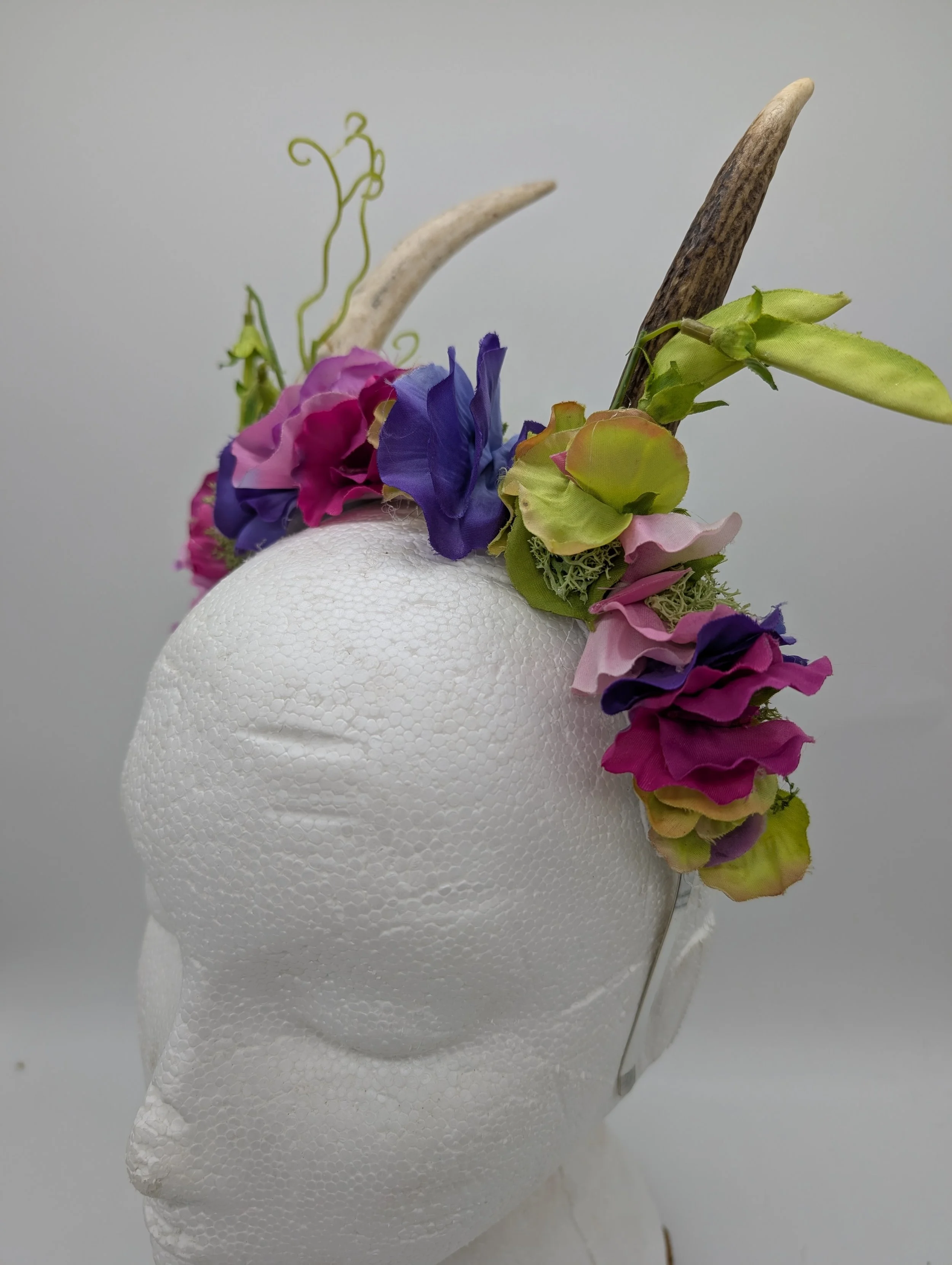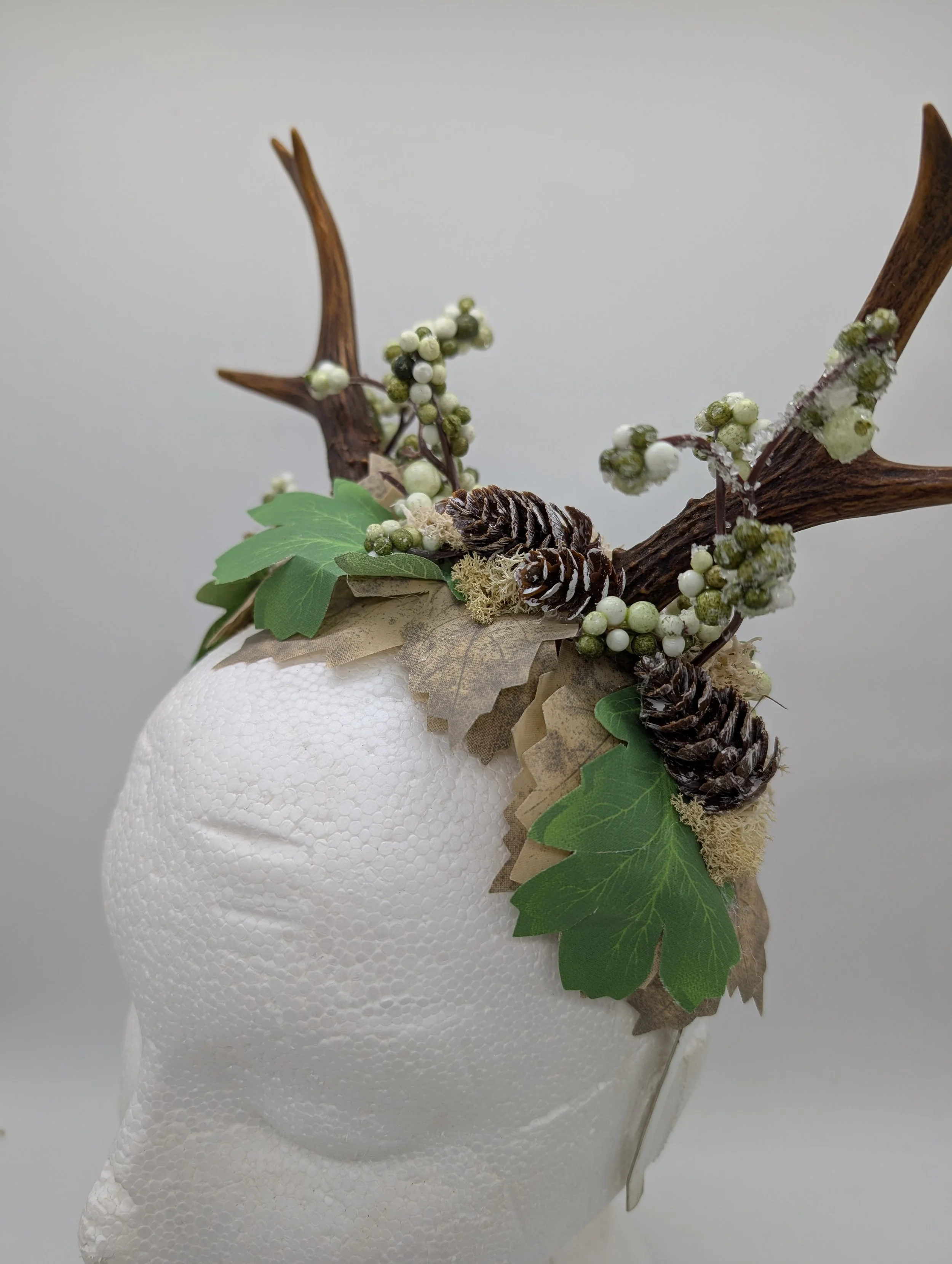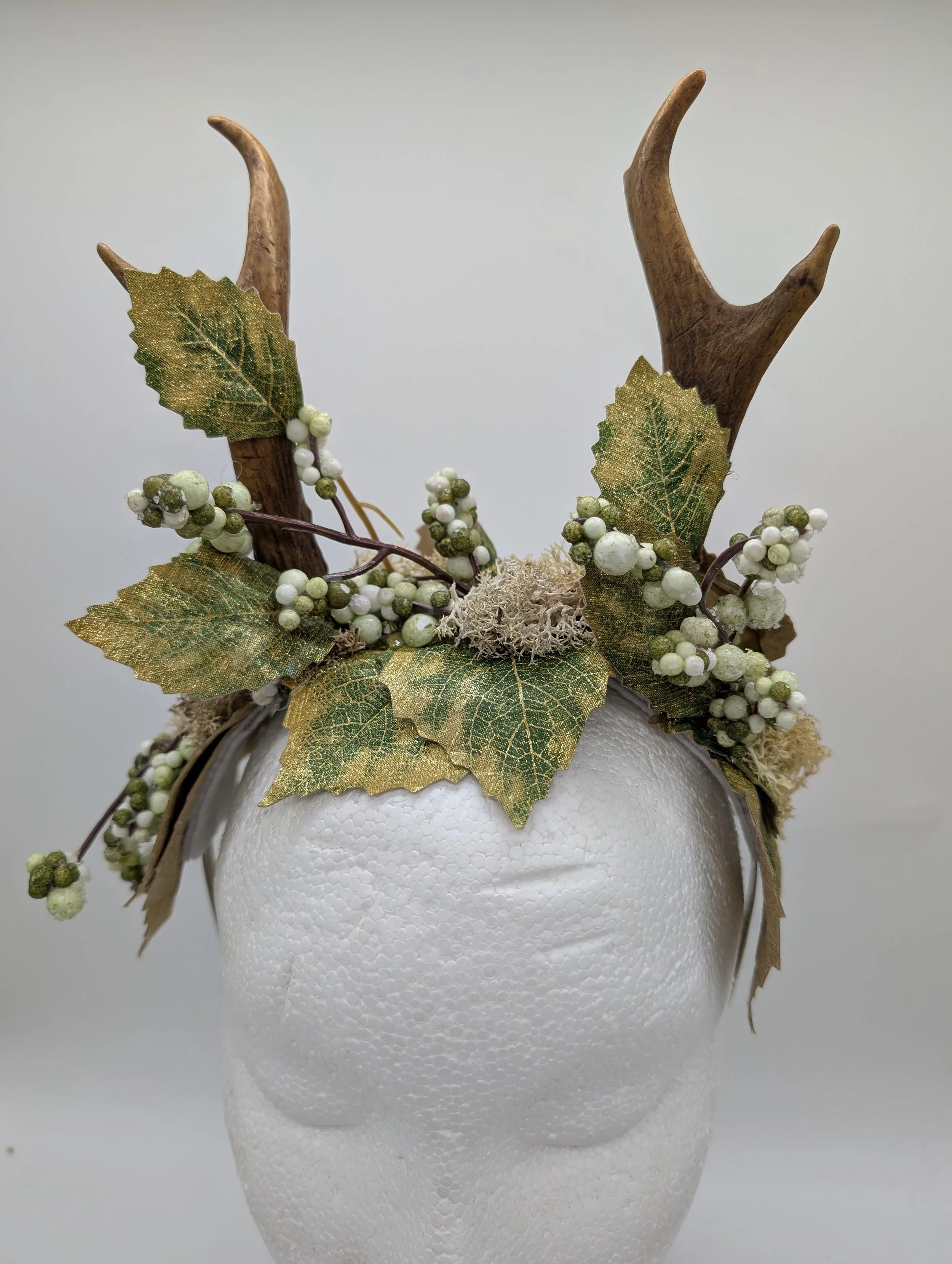 antler headband with black lace and butterflies