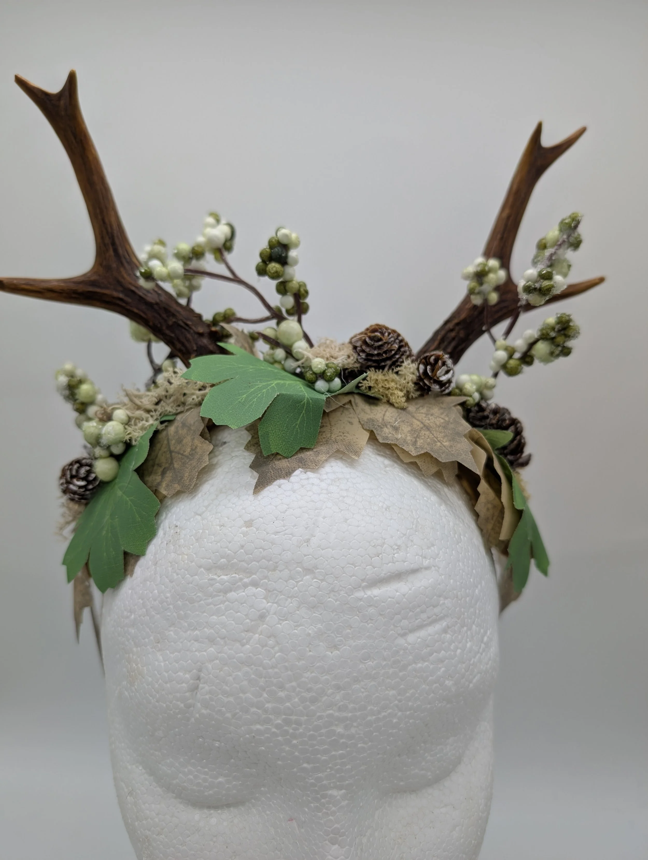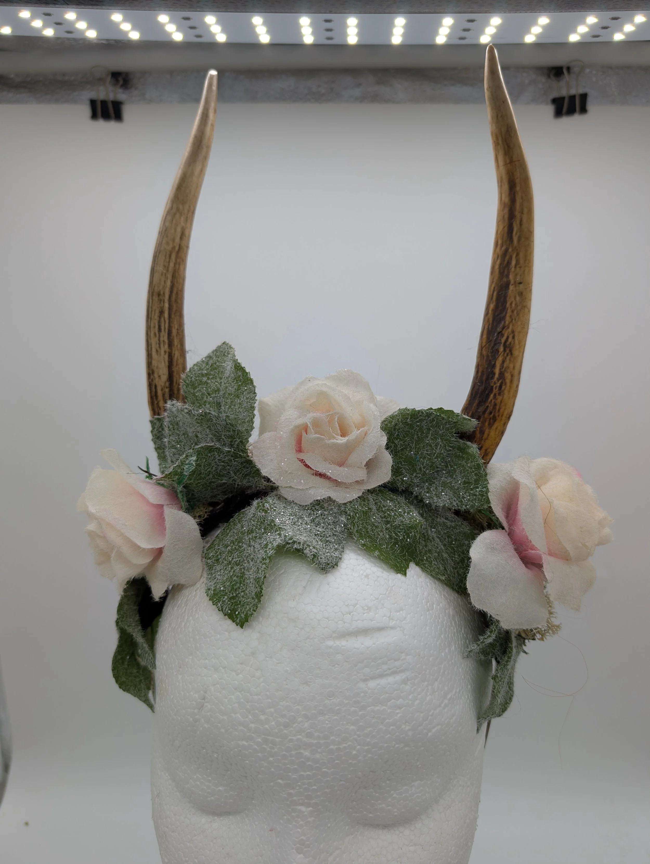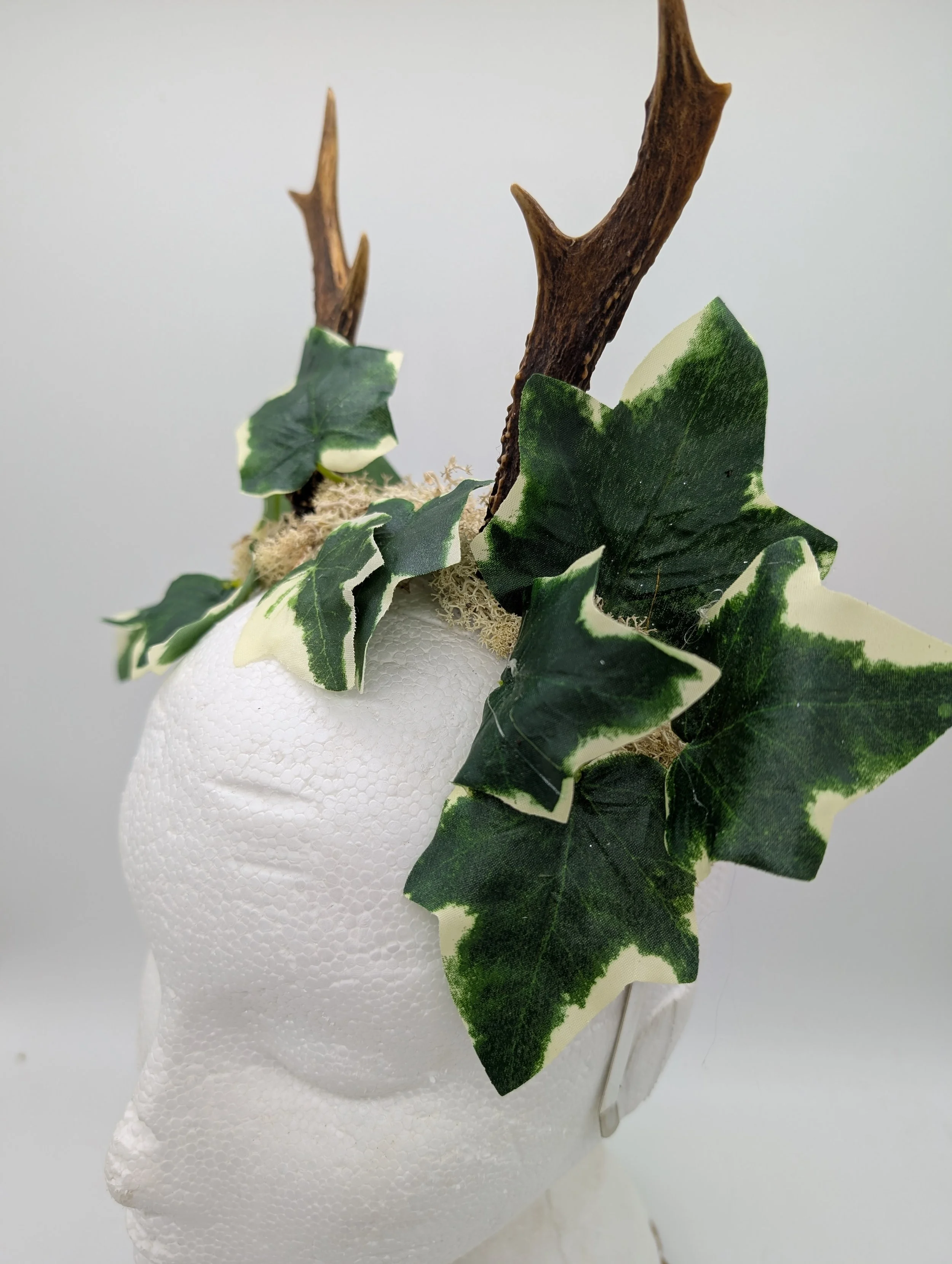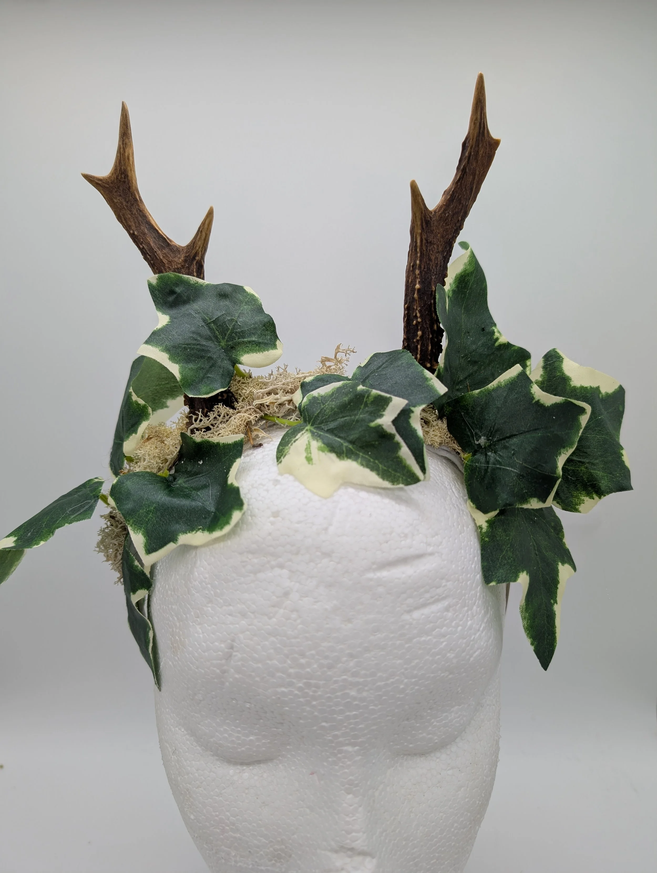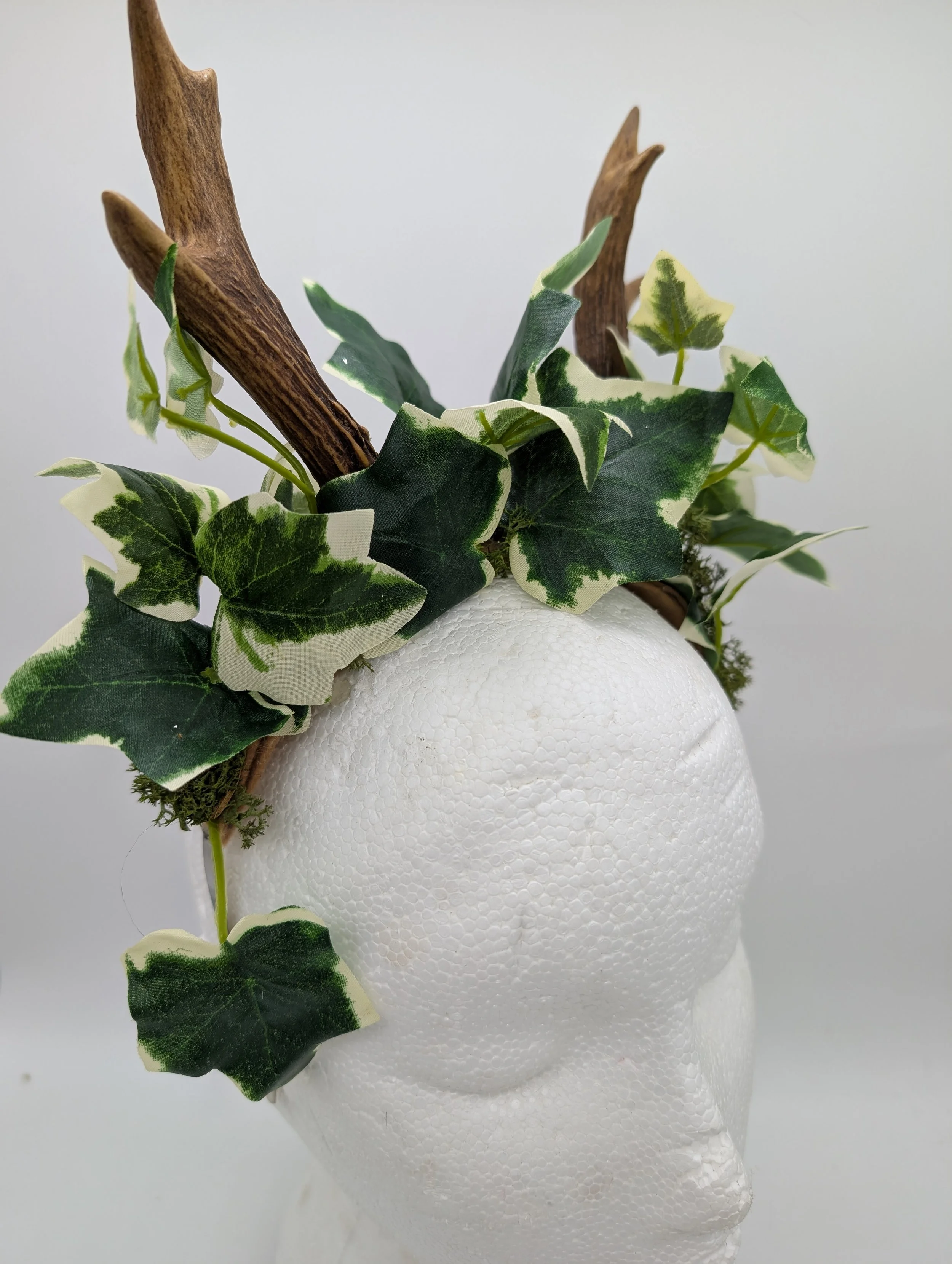 antler headband with black lace and butterflies