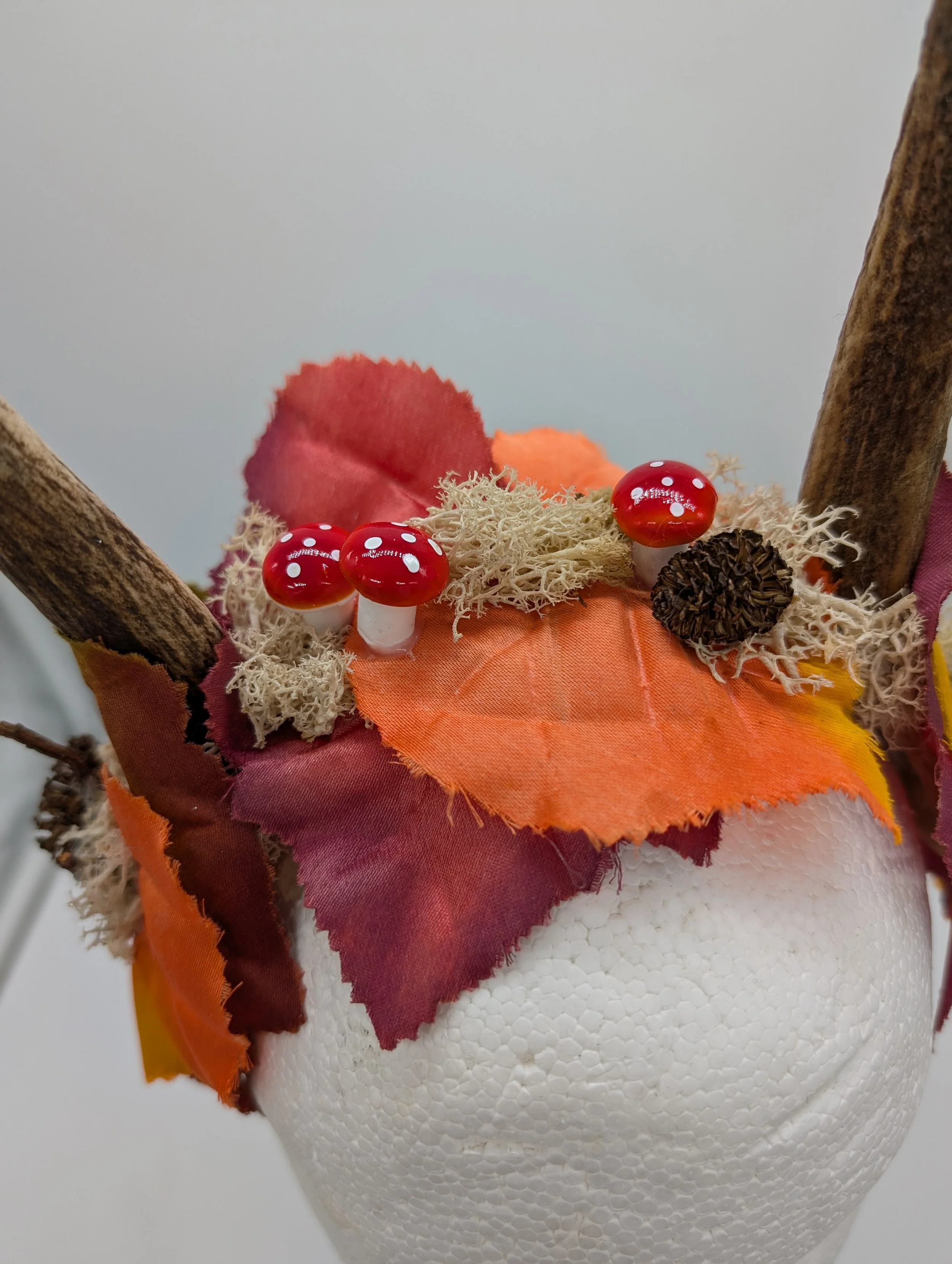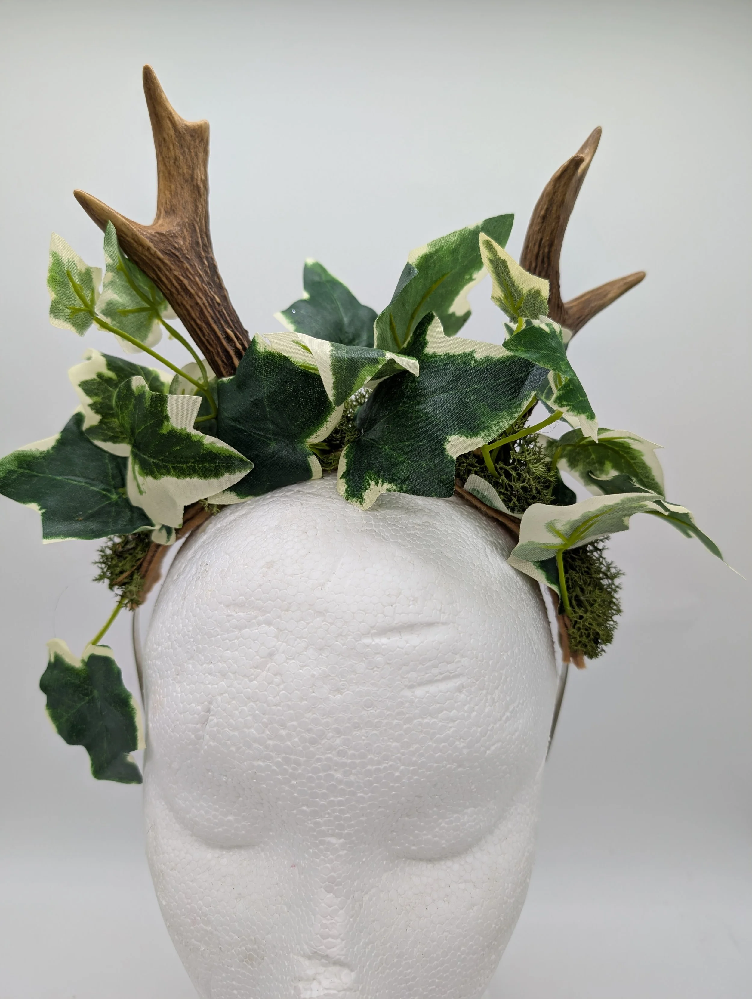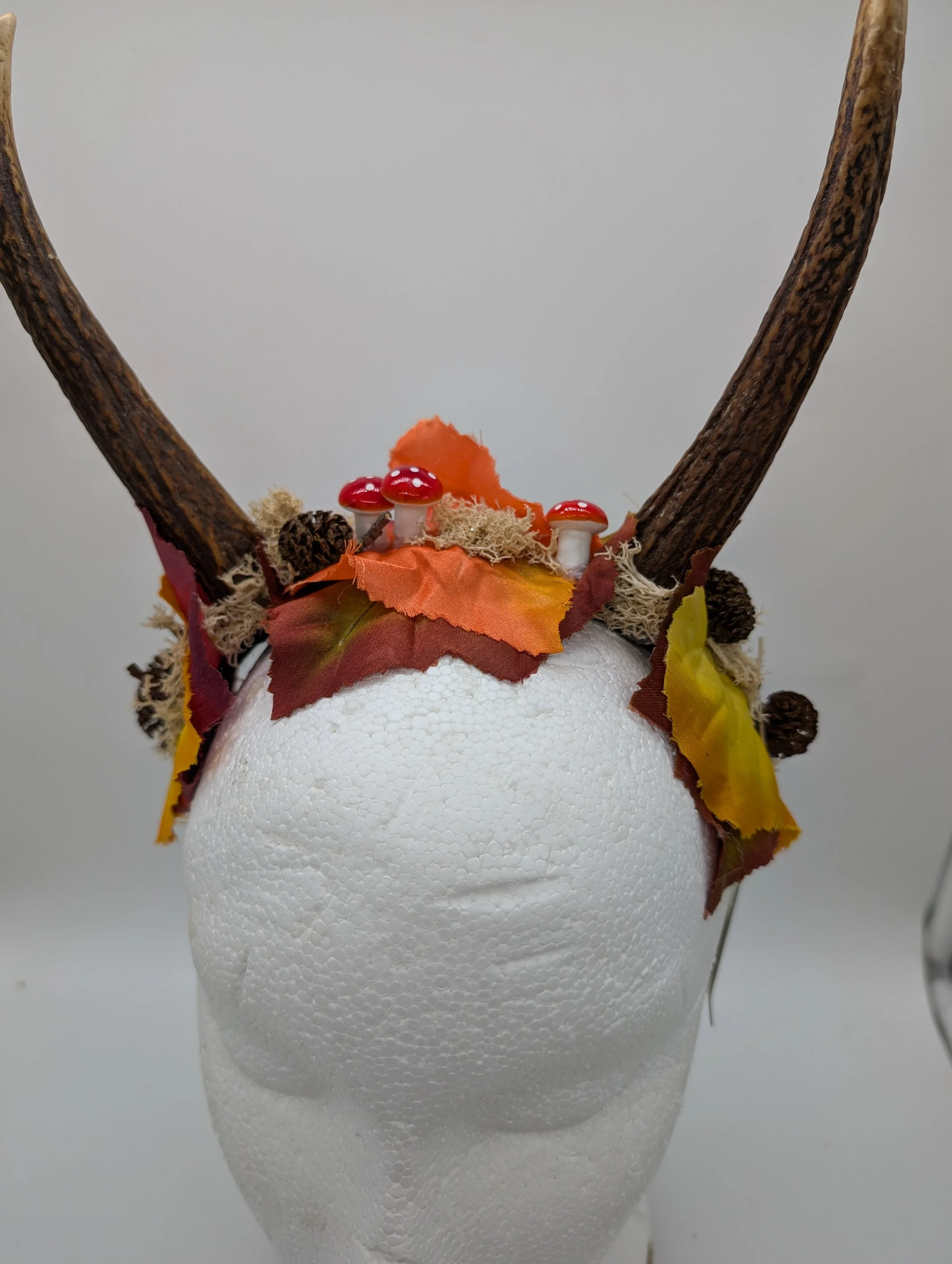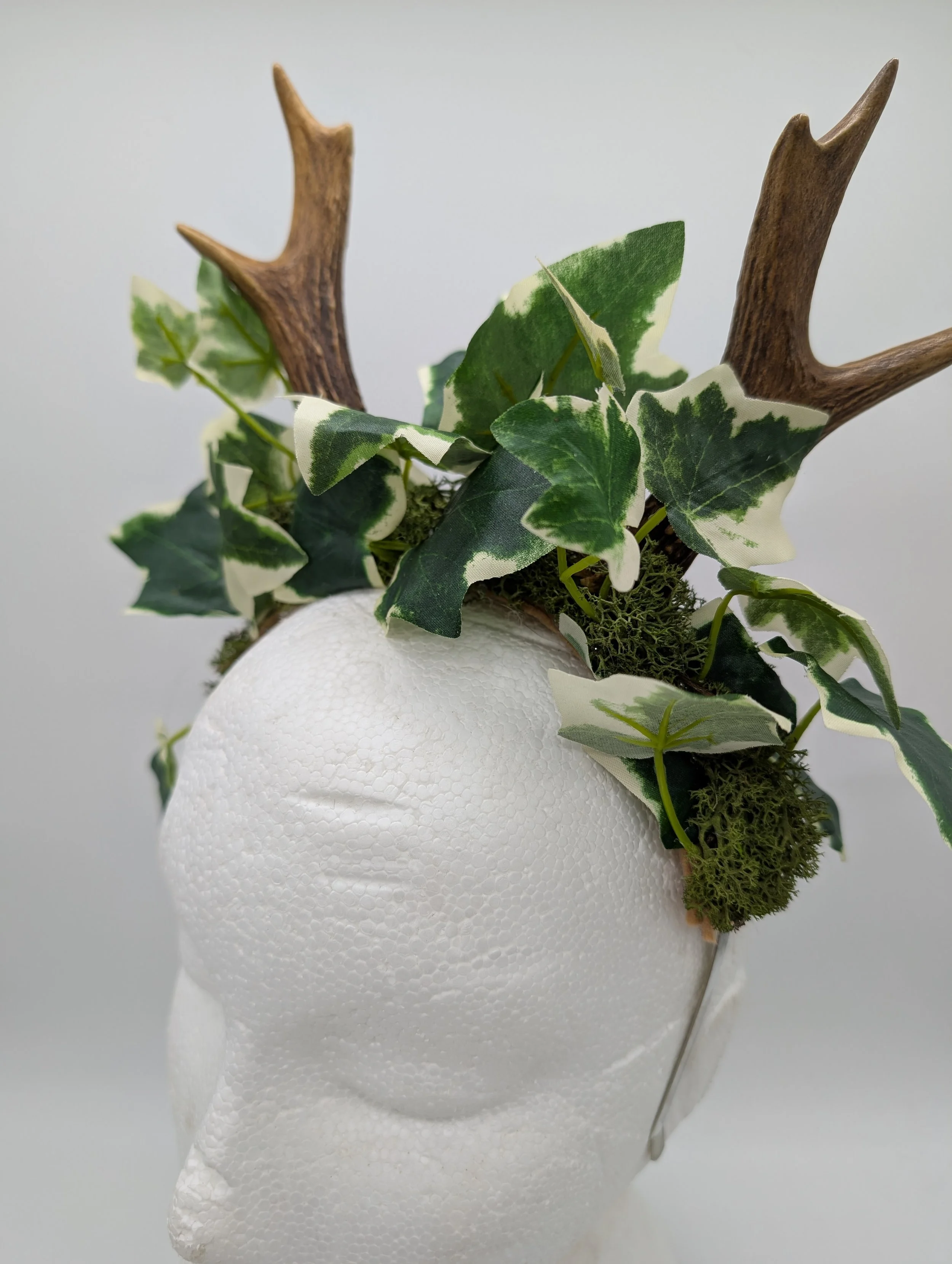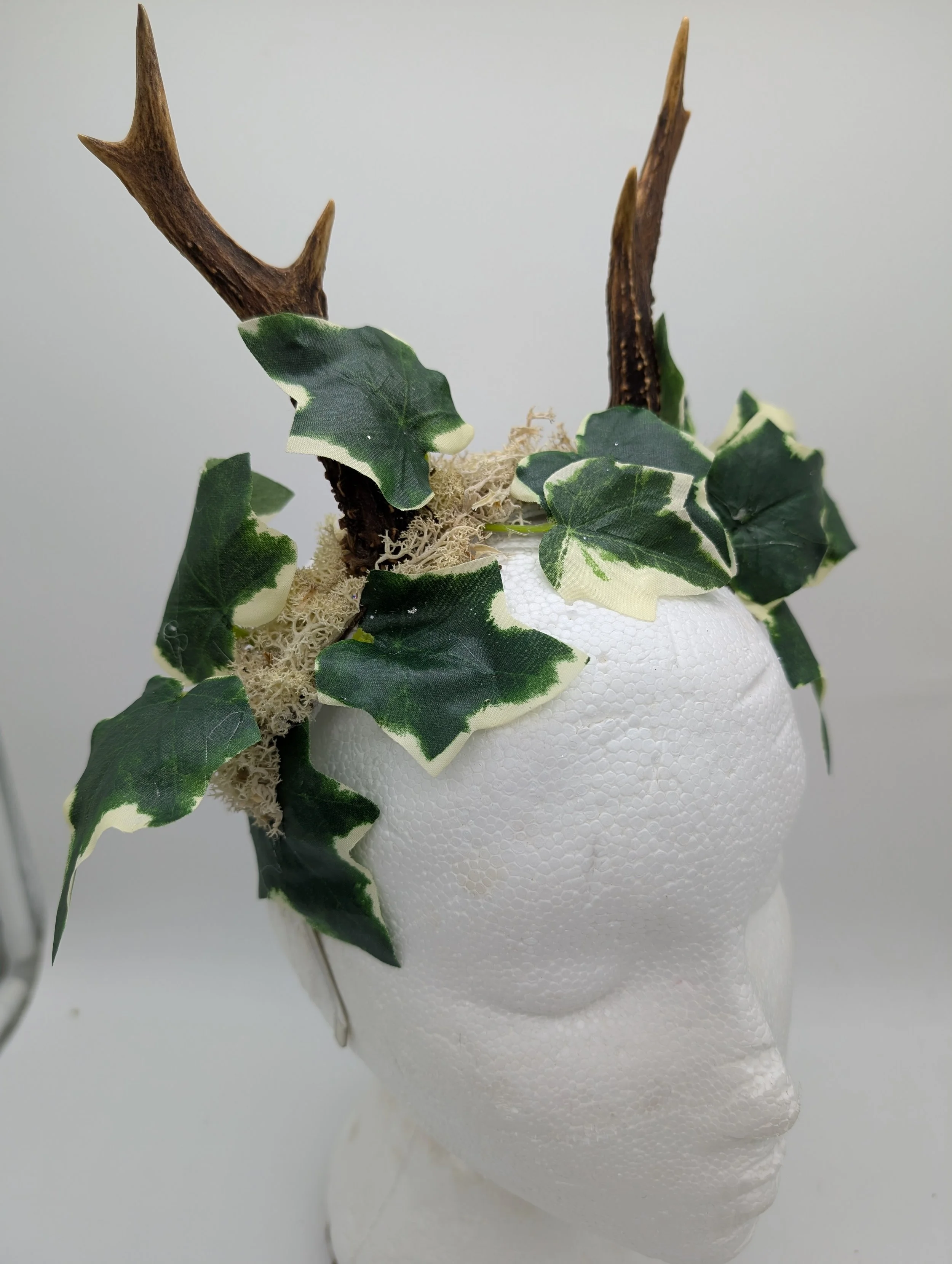 antler headband with black lace and butterflies
